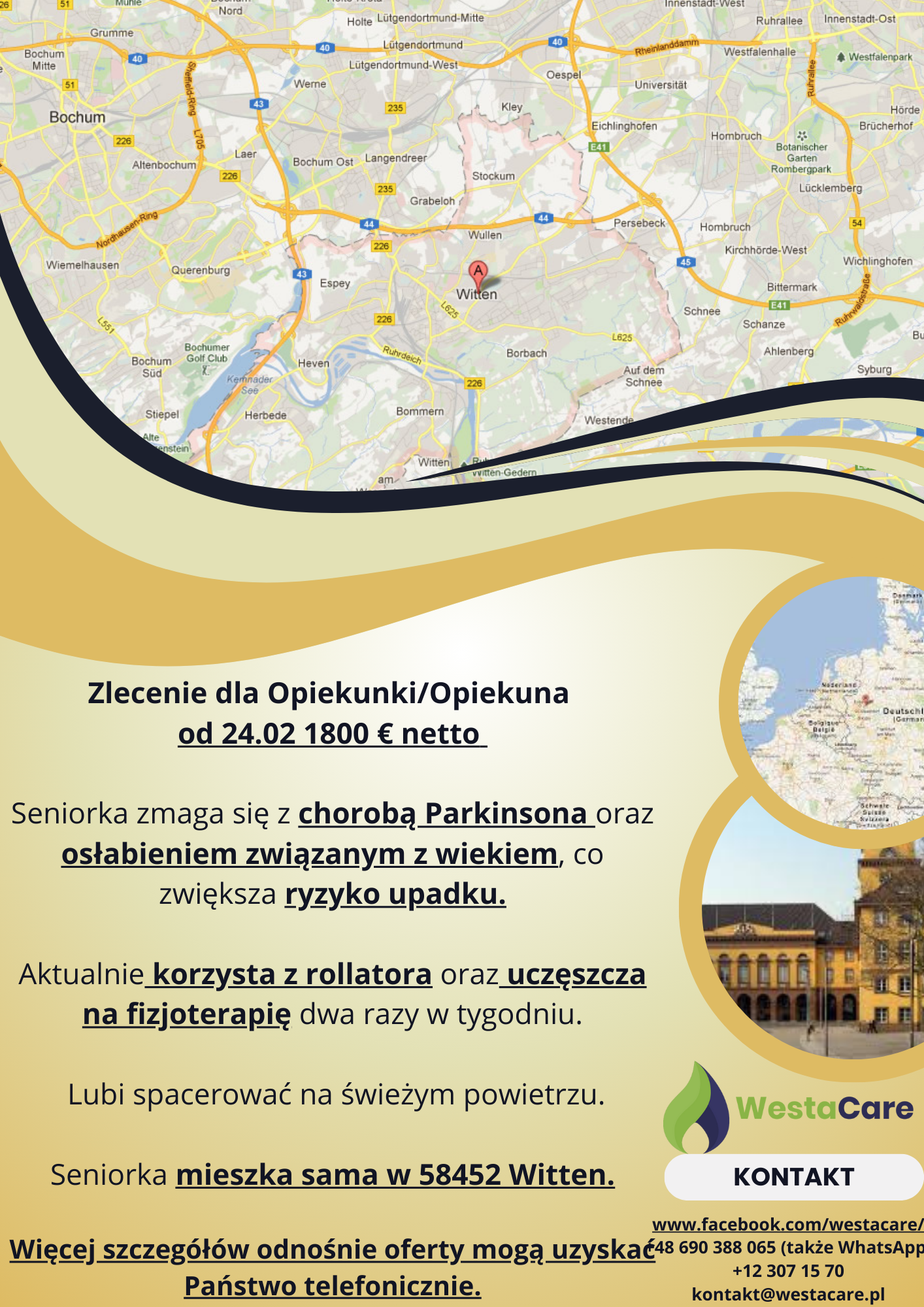 Zlecenie dla Opiekunki/Opiekuna od 24.02 1800 € netto