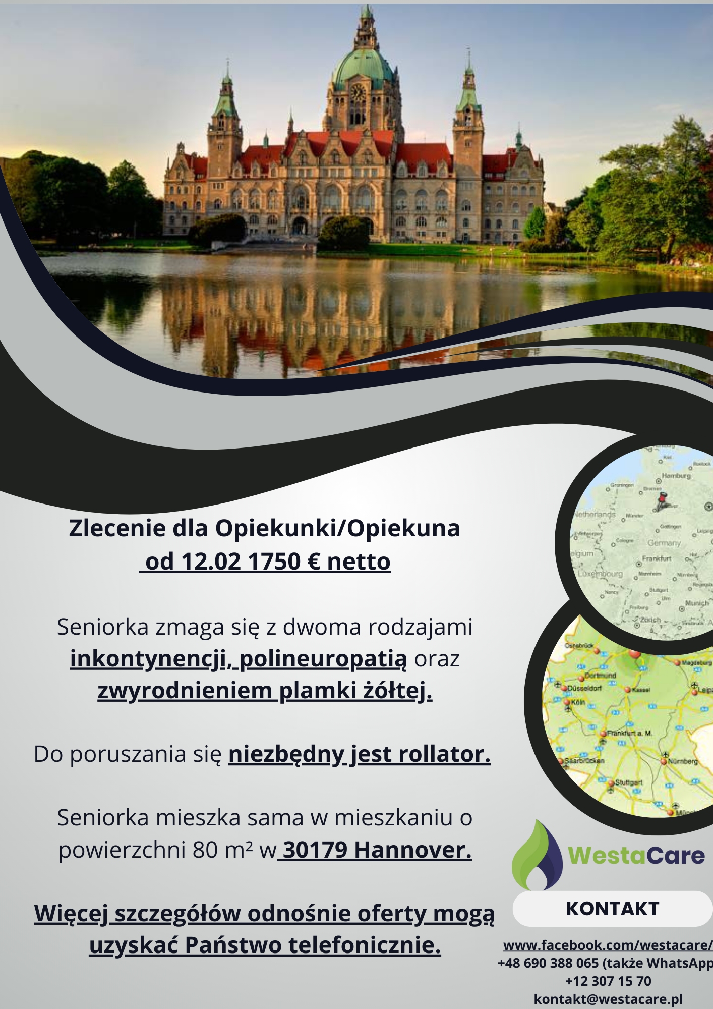 Zlecenie dla Opiekunki/Opiekuna od 12.02 1750 € netto