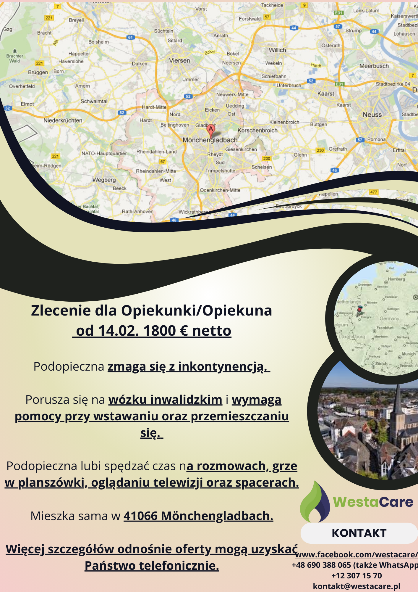 Zlecenie dla Opiekunki/Opiekuna od 14.02. 1800 € netto