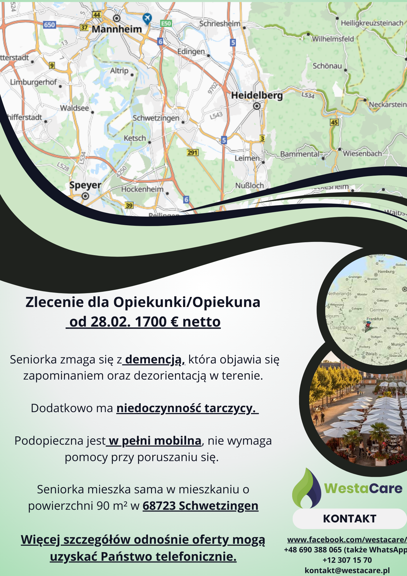 Zlecenie dla Opiekunki/Opiekuna od 28.02. 1700 € netto