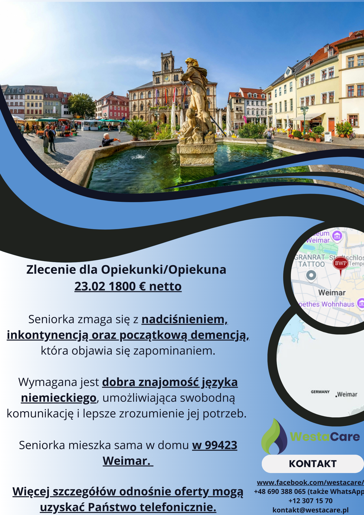 Zlecenie dla Opiekunki/Opiekuna 23.02 1800 € netto