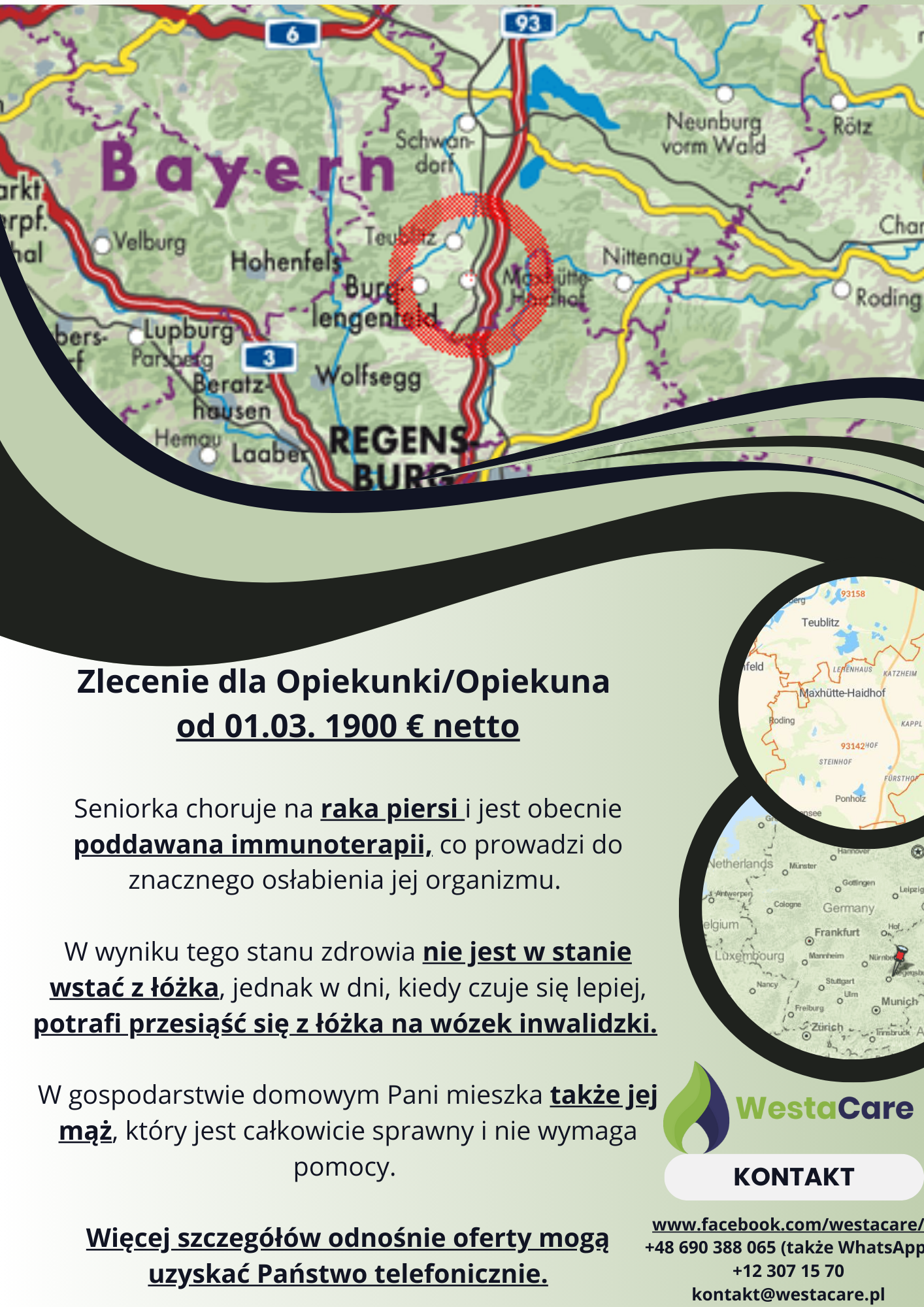 Zlecenie dla Opiekunki/Opiekuna od 01.03. 1900 € netto