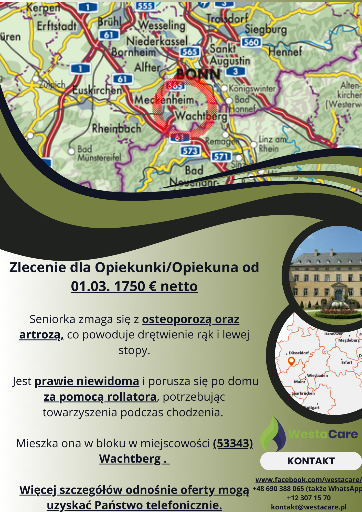 Zlecenie dla Opiekunki/Opiekuna od 01.03. 1750 € netto
