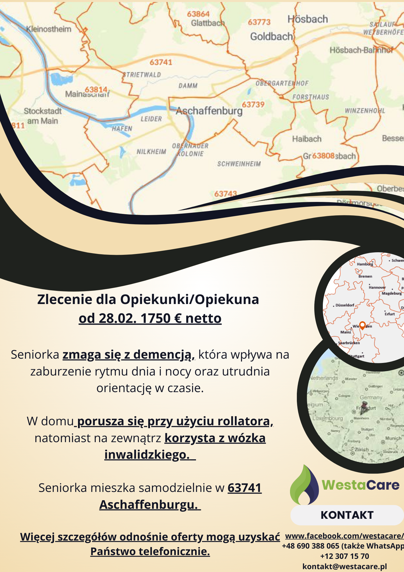 Zlecenie dla Opiekunki/Opiekuna od 28.02. 1750 € netto