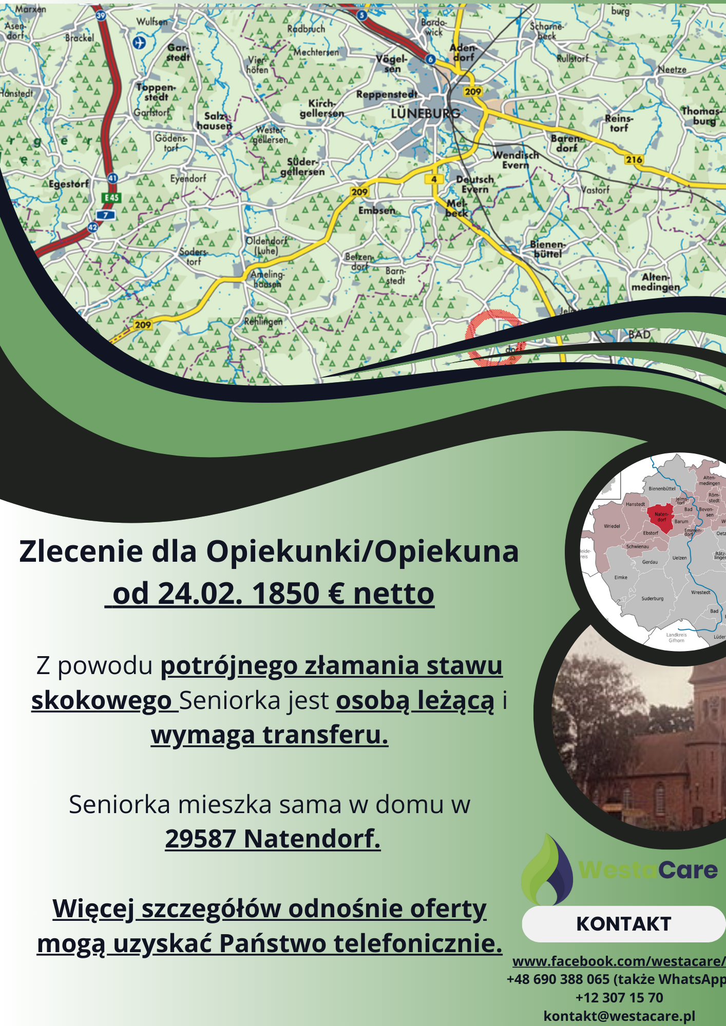 Zlecenie dla Opiekunki/Opiekuna od 24.02. 1850 € netto