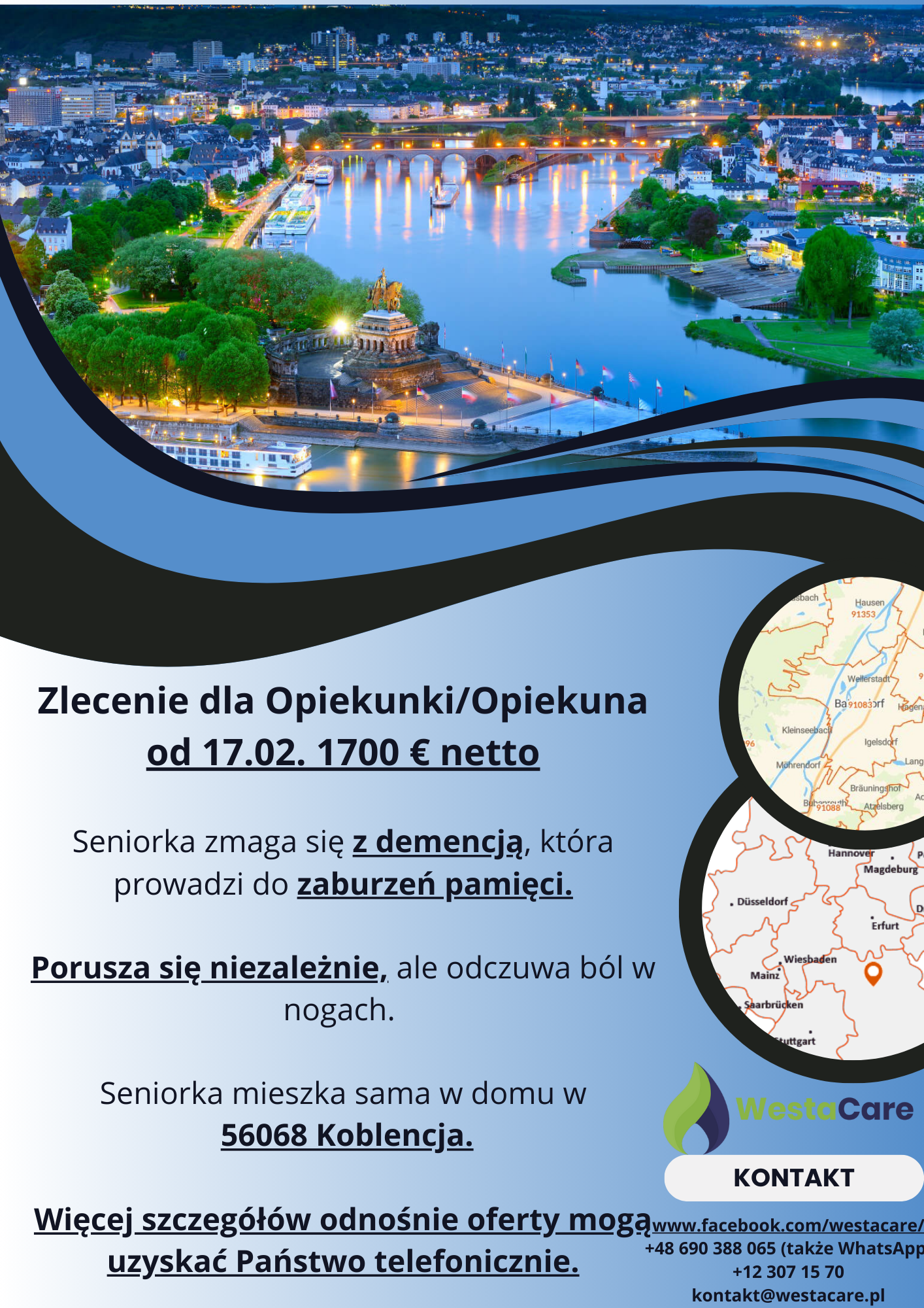 Zlecenie dla Opiekunki/Opiekuna od 17.02. 1700 € netto