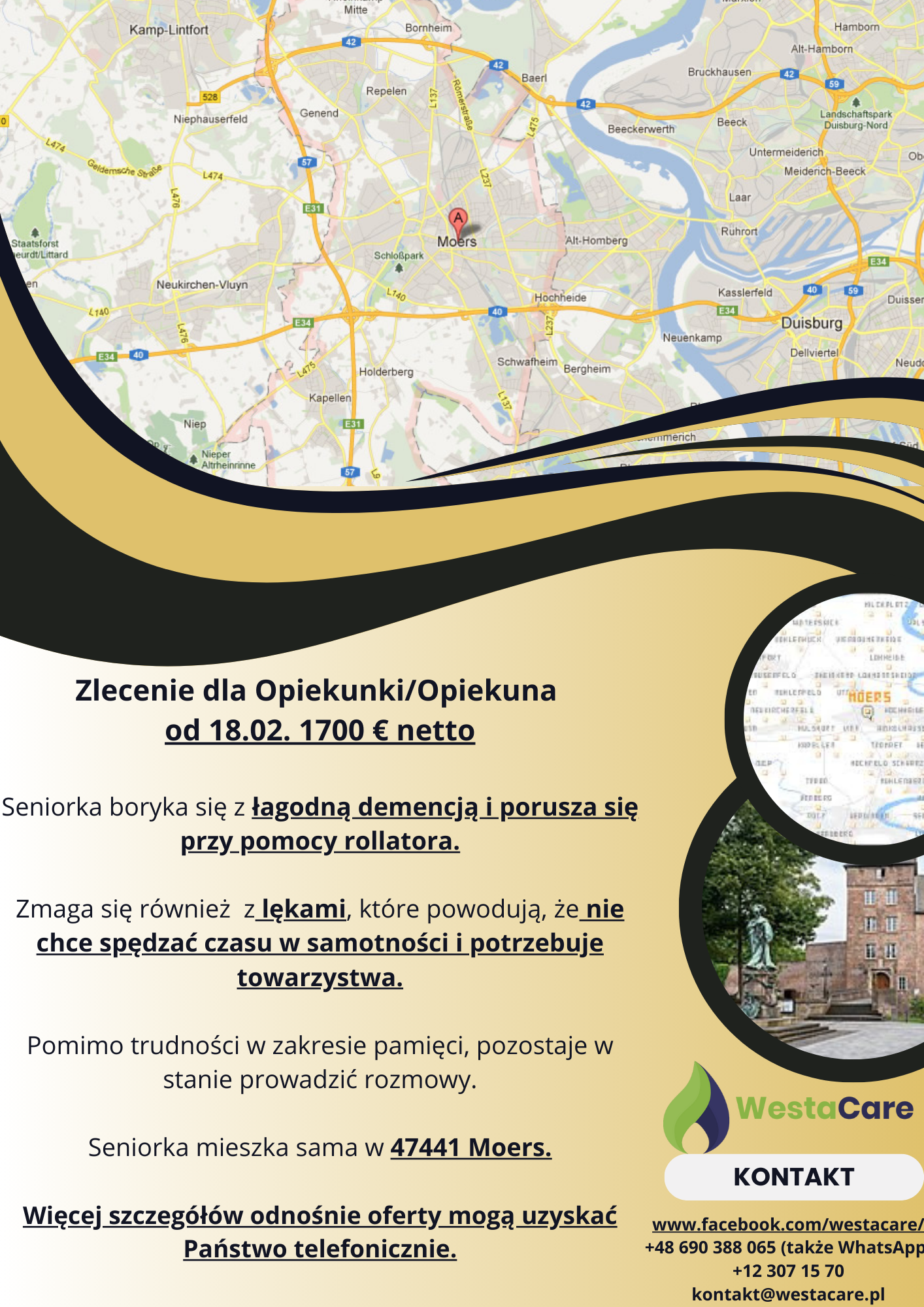 Zlecenie dla Opiekunki/Opiekuna od 18.02. 1700 € netto