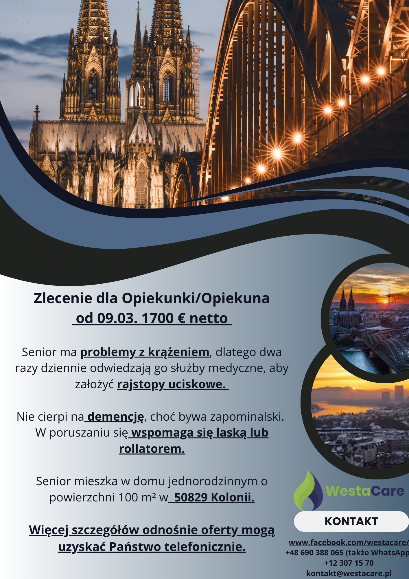 Zlecenie dla Opiekunki/Opiekuna od 09.03. 1700 € netto