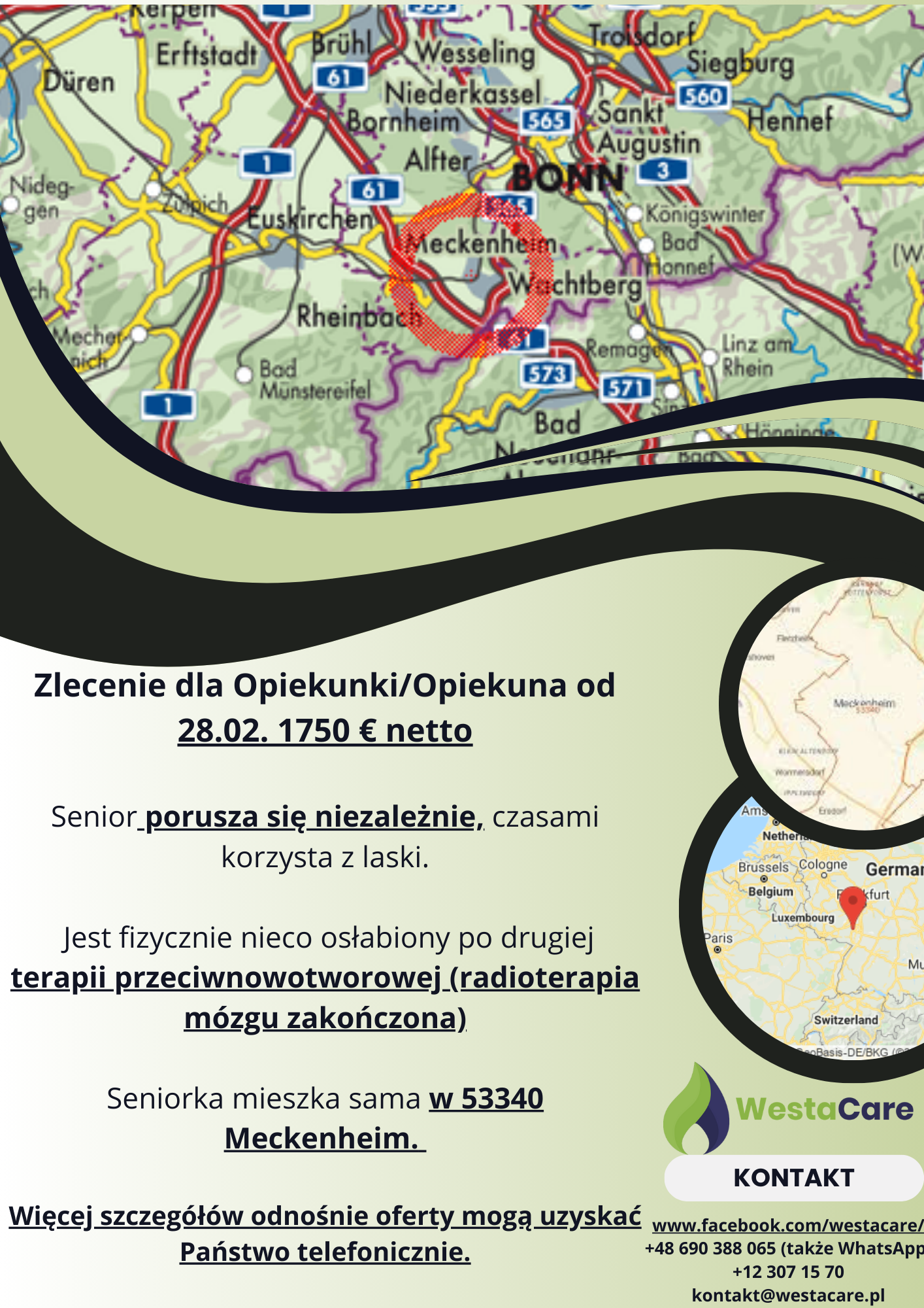 Zlecenie dla Opiekunki/Opiekuna od 28.02. 1750 € netto
