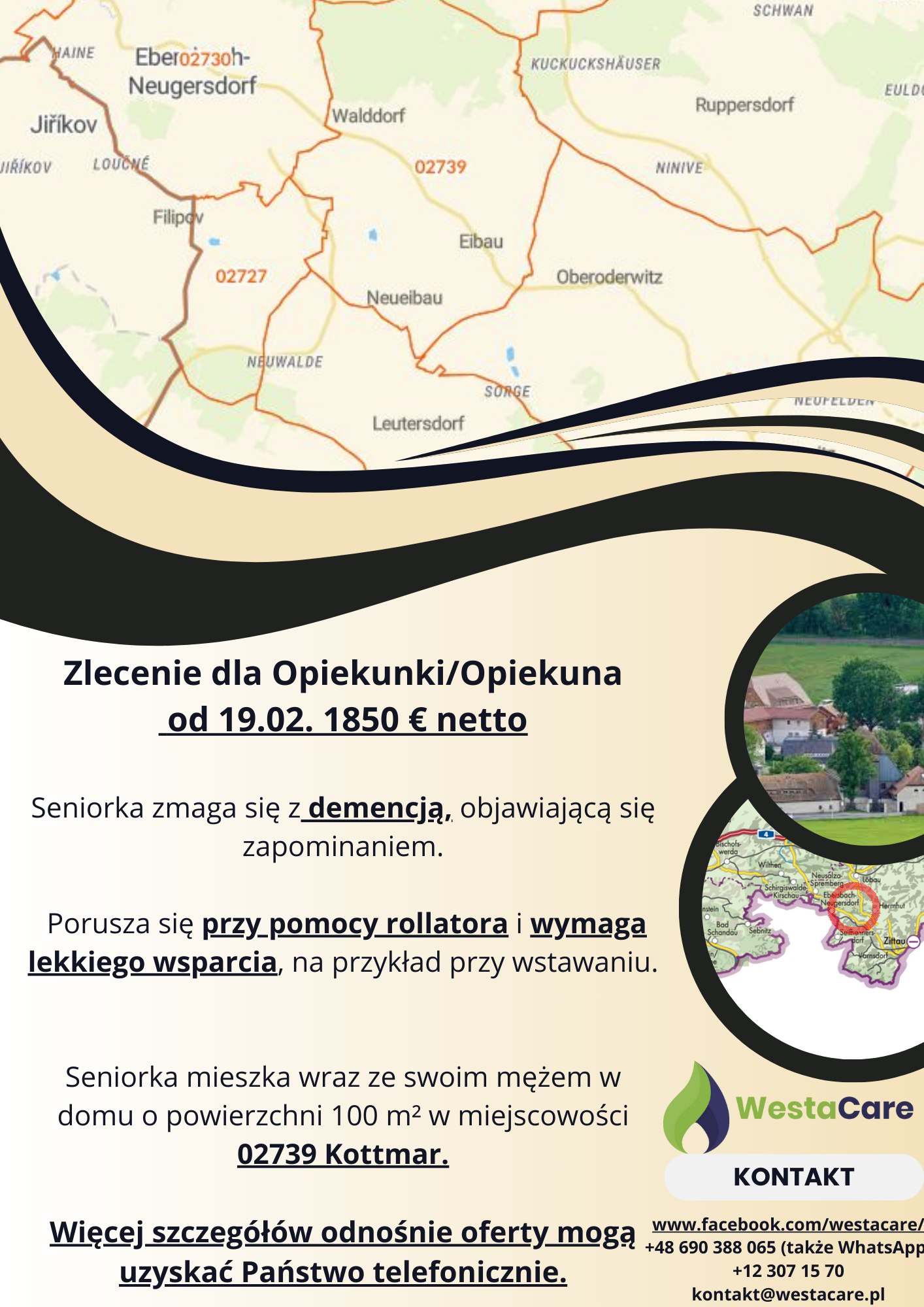 Zlecenie dla Opiekunki/Opiekuna od 19.02. 1850 € netto