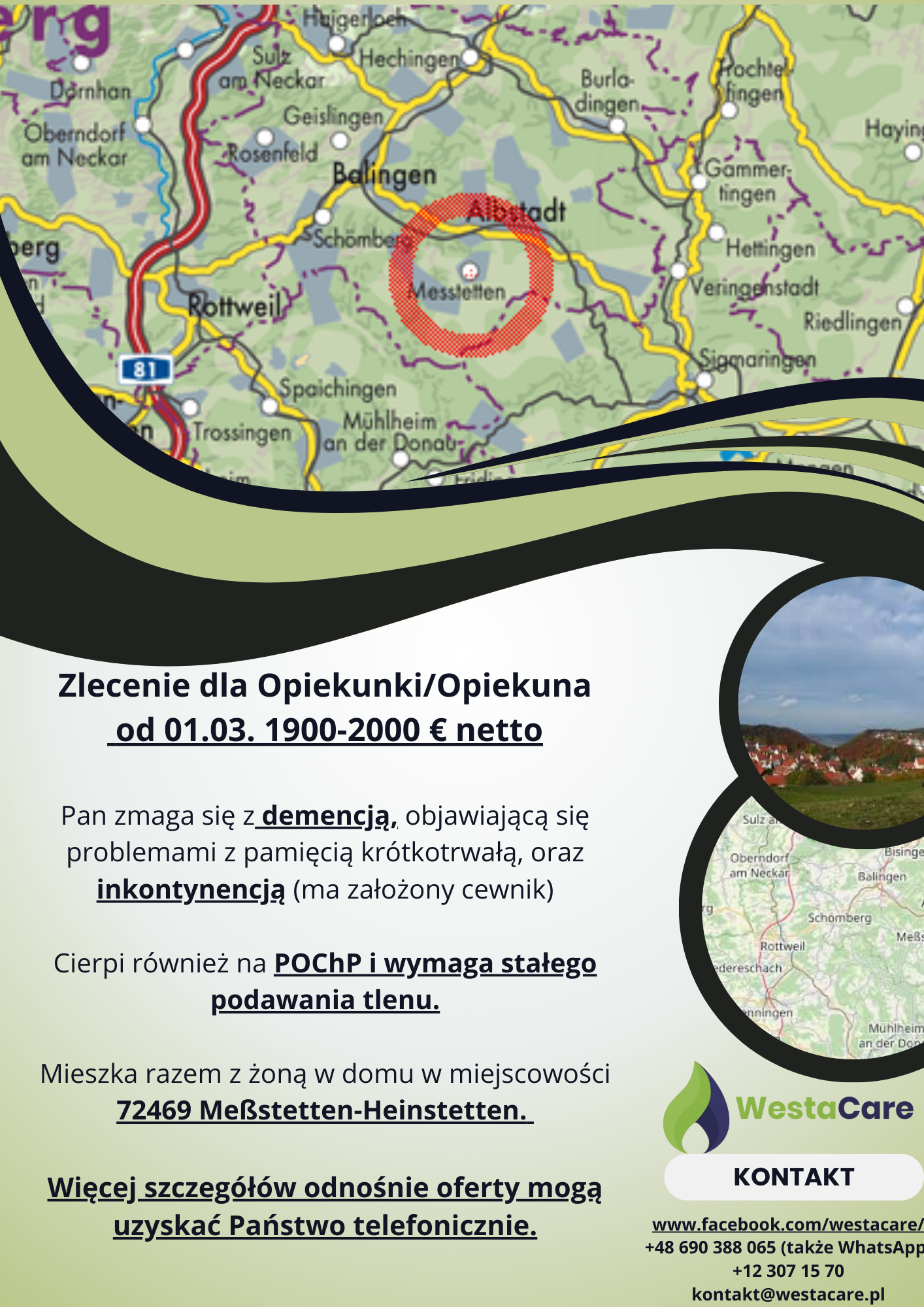 Zlecenie dla Opiekunki/Opiekuna od 01.03. 1900-2000 € netto