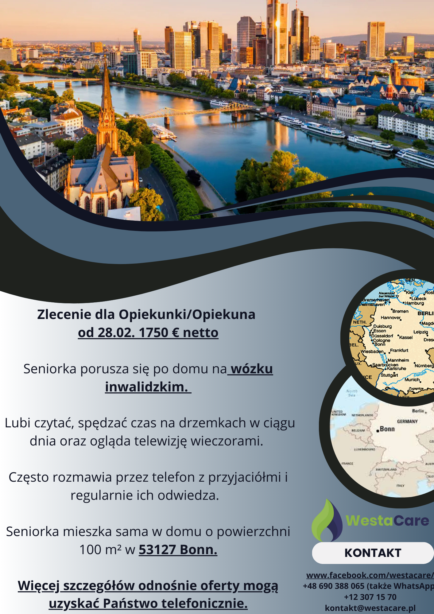 Zlecenie dla Opiekunki/Opiekuna od 28.02. 1750 € netto
