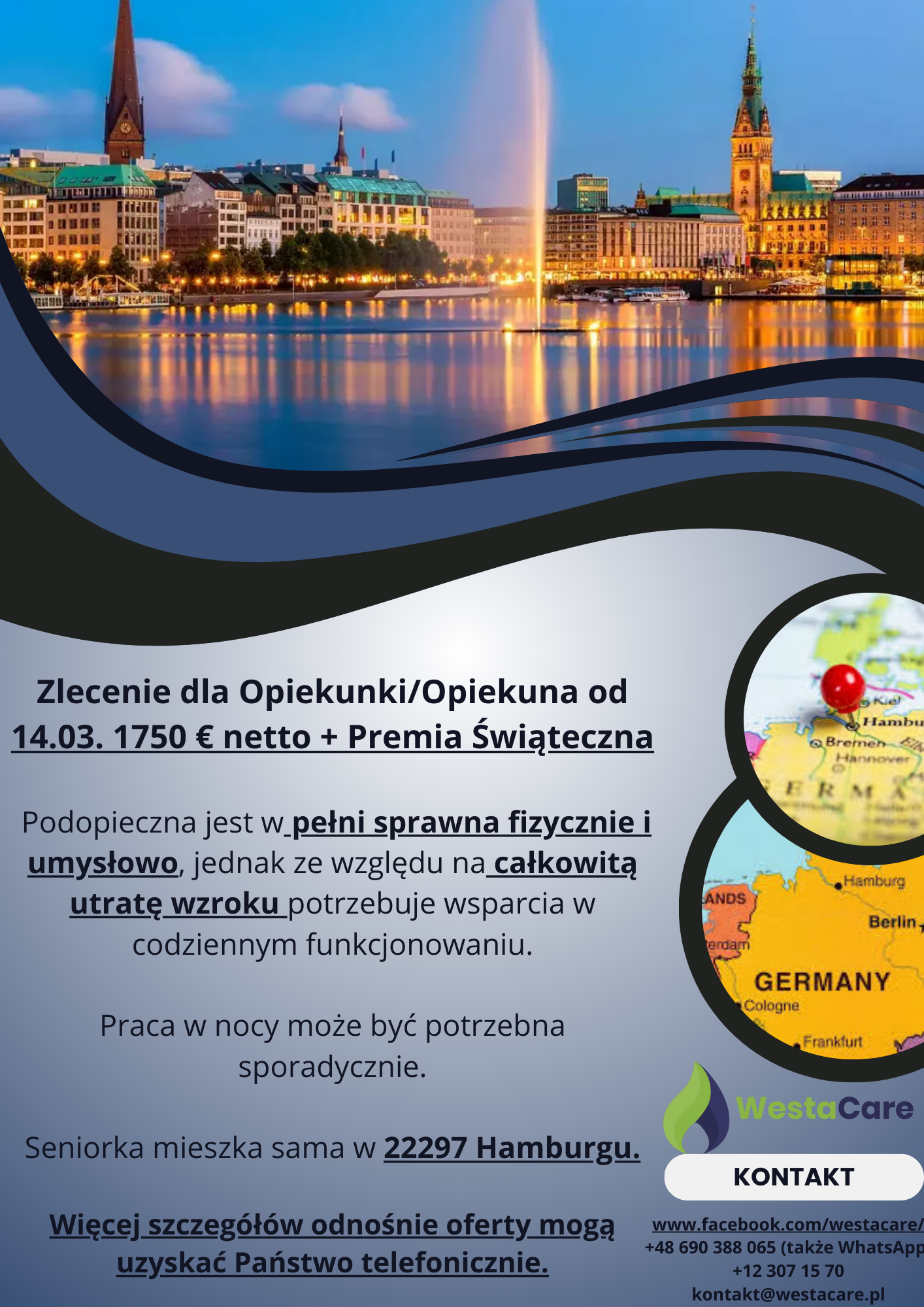 Zlecenie dla Opiekunki/Opiekuna od 14.03. 1750 € netto + Premia Świąteczna