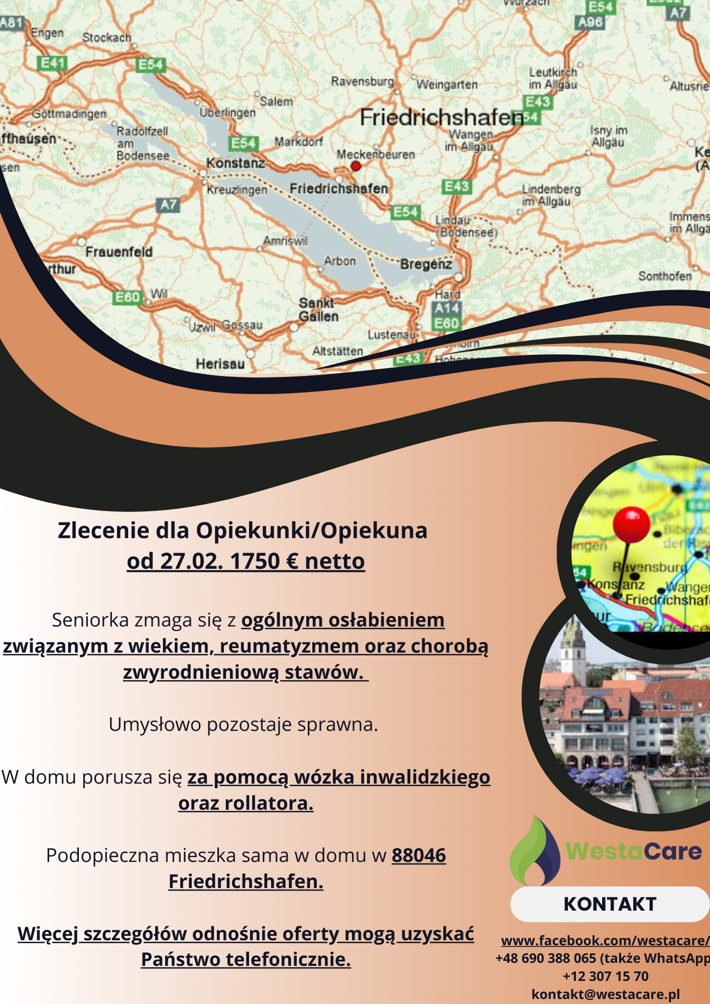 Zlecenie dla Opiekunki/Opiekuna od 27.02. 1750 € netto