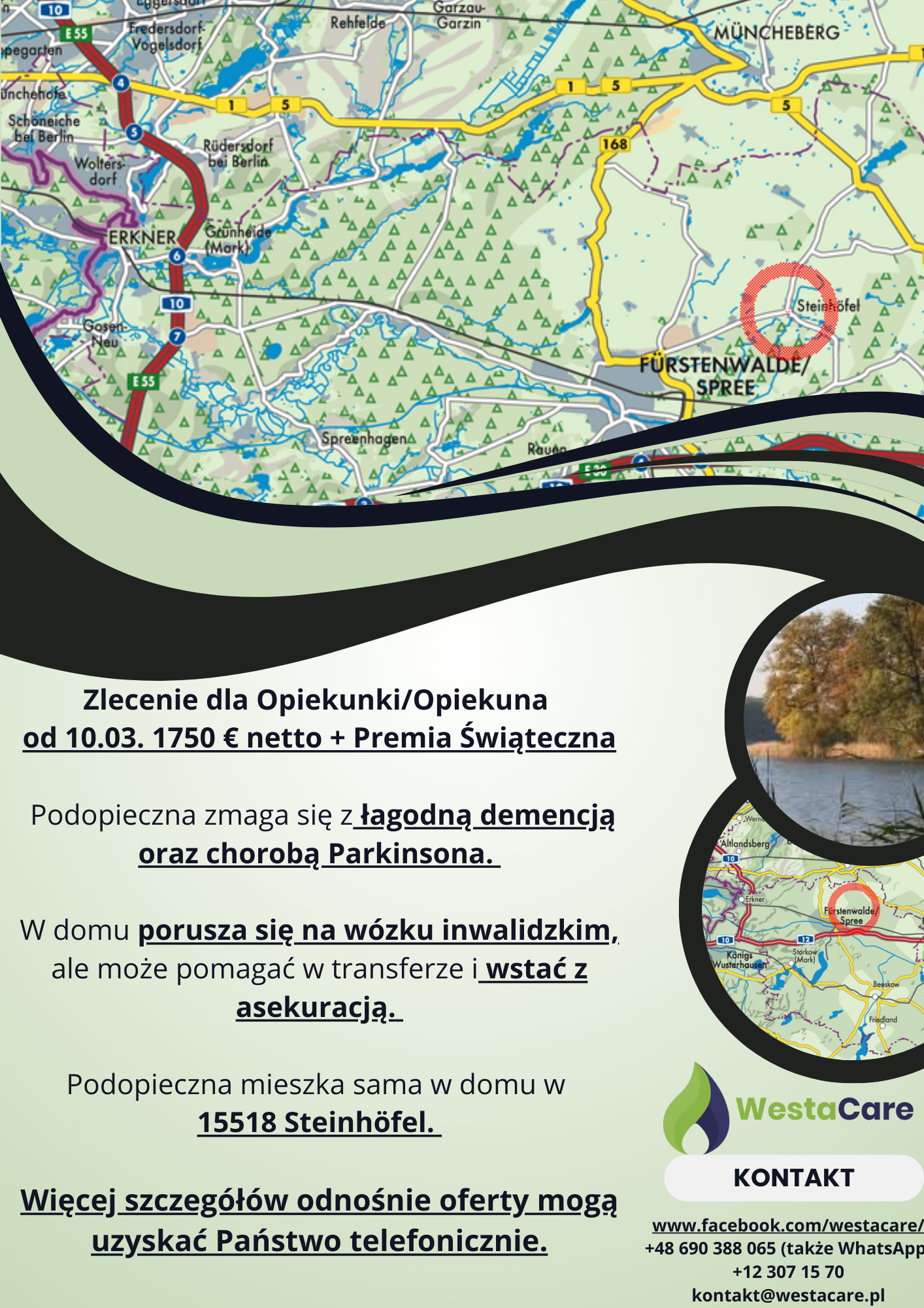 Zlecenie dla Opiekunki/Opiekuna od 10.03. 1750 € netto + Premia Świąteczna