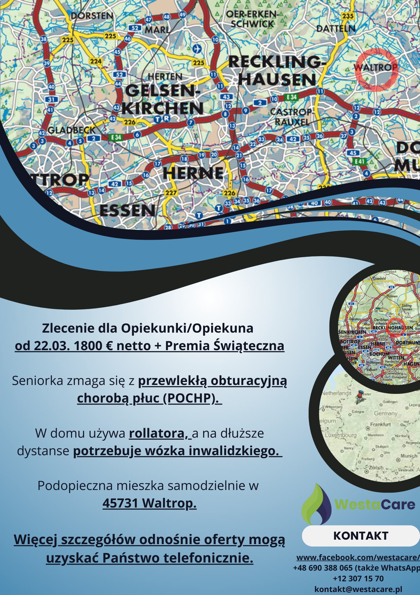 Zlecenie dla Opiekunki/Opiekuna od 22.03. 1800 € netto + Premia Świąteczna