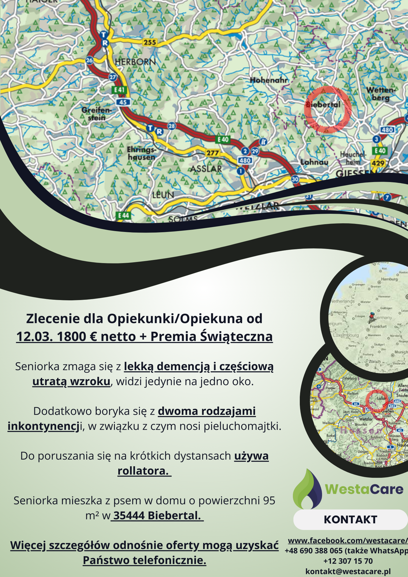 Zlecenie dla Opiekunki/Opiekuna od 12.03. 1800 € netto + Premia Świąteczna