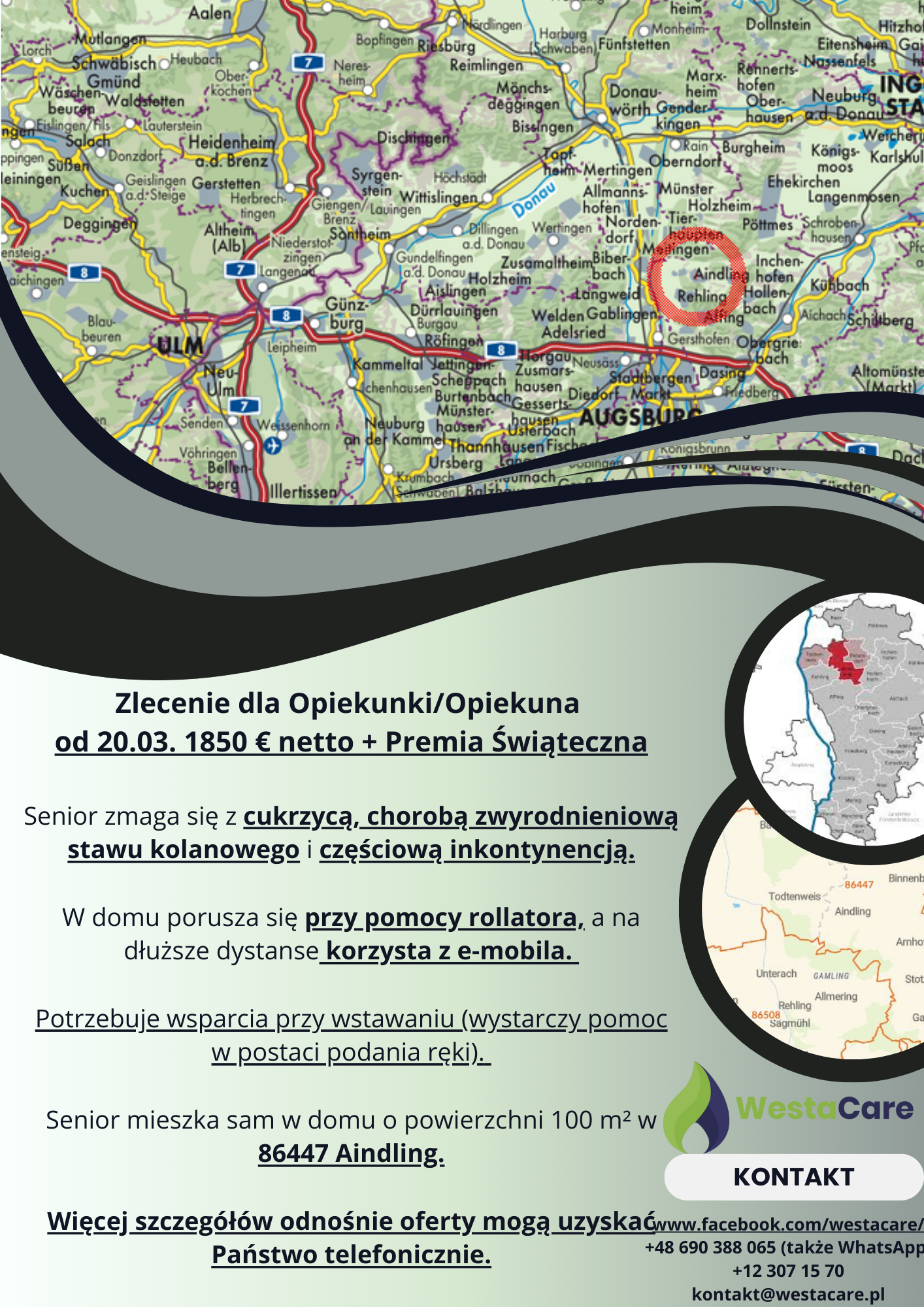 Zlecenie dla Opiekunki/Opiekuna od 20.03. 1850 € netto + Premia Świąteczna