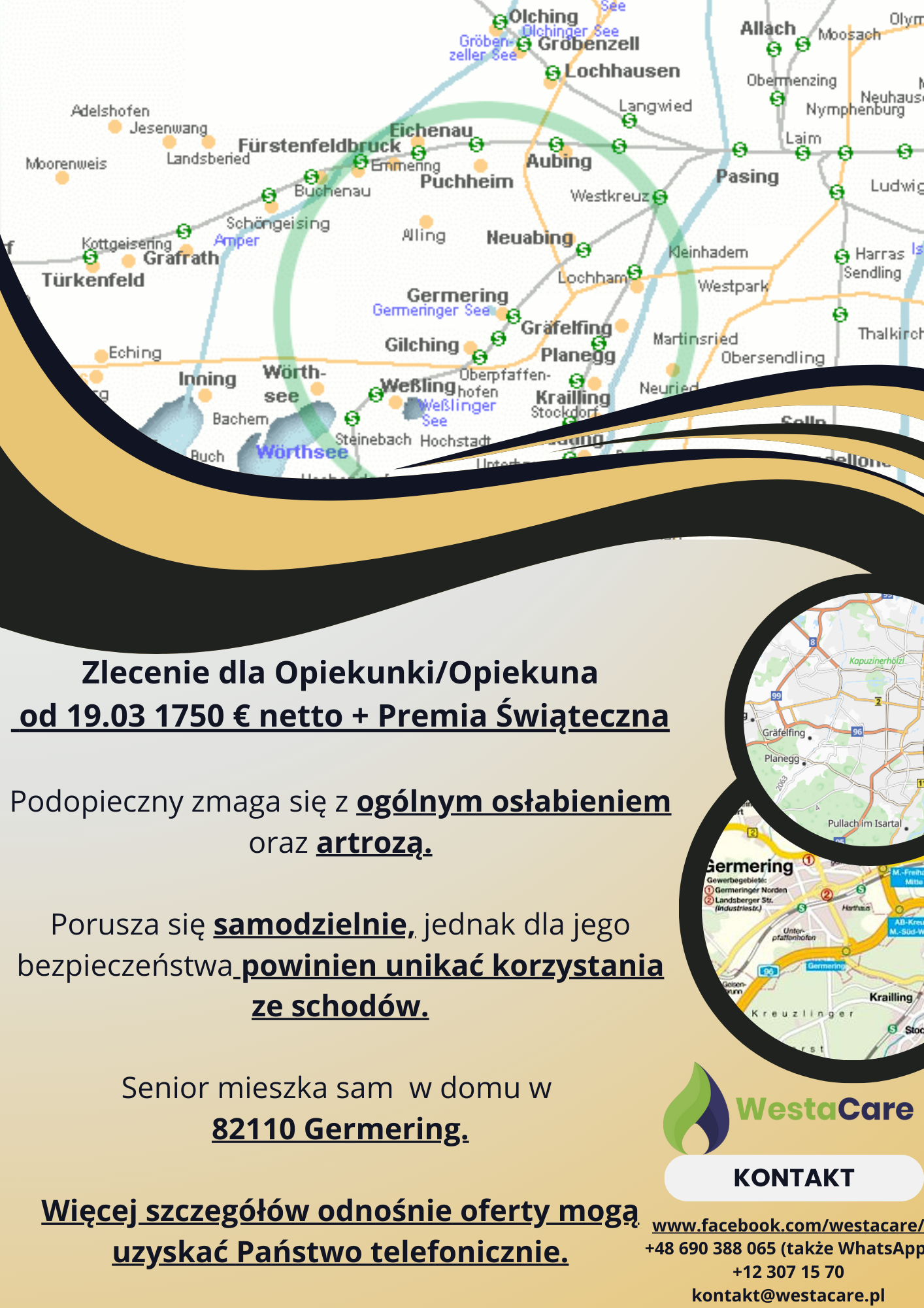 Zlecenie dla Opiekunki/Opiekuna od 19.03 1750 € netto + Premia Świąteczna
