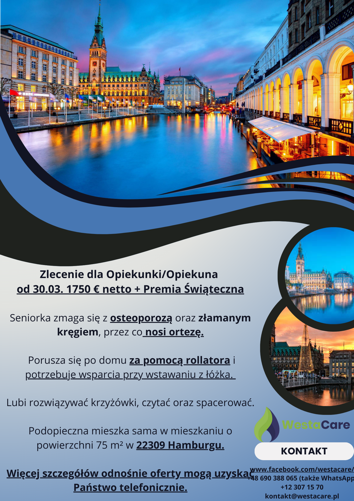 Zlecenie dla Opiekunki/Opiekuna od 30.03. 1750 € netto + Premia Świąteczna
