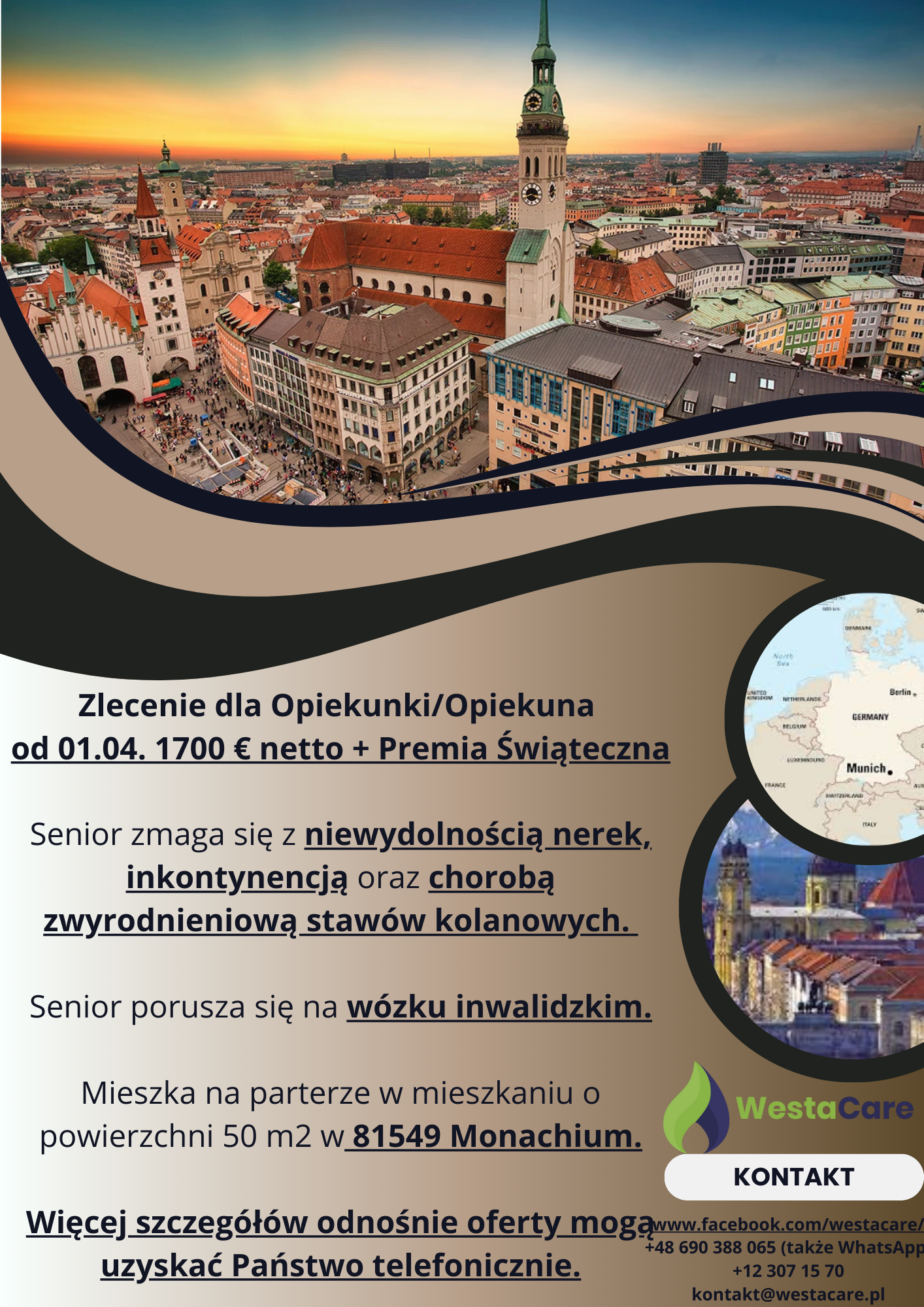 Zlecenie dla Opiekunki/Opiekuna od 01.04. 1700 € netto + Premia Świąteczna