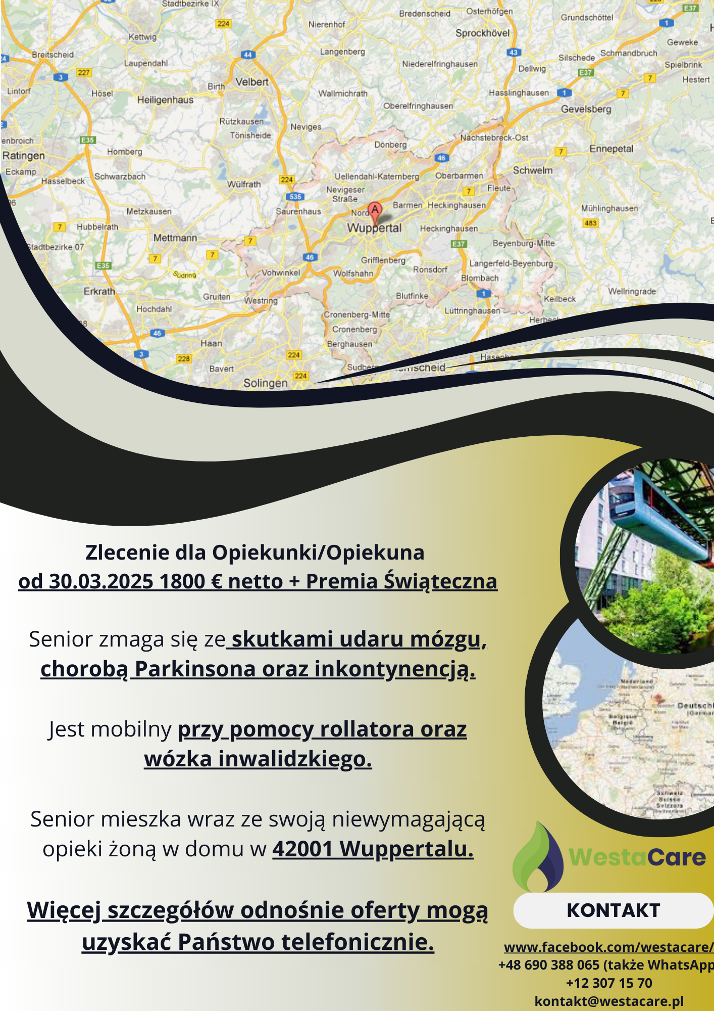 Zlecenie dla Opiekunki/Opiekuna od 30.03.2025 1800 € netto + Premia Świąteczna