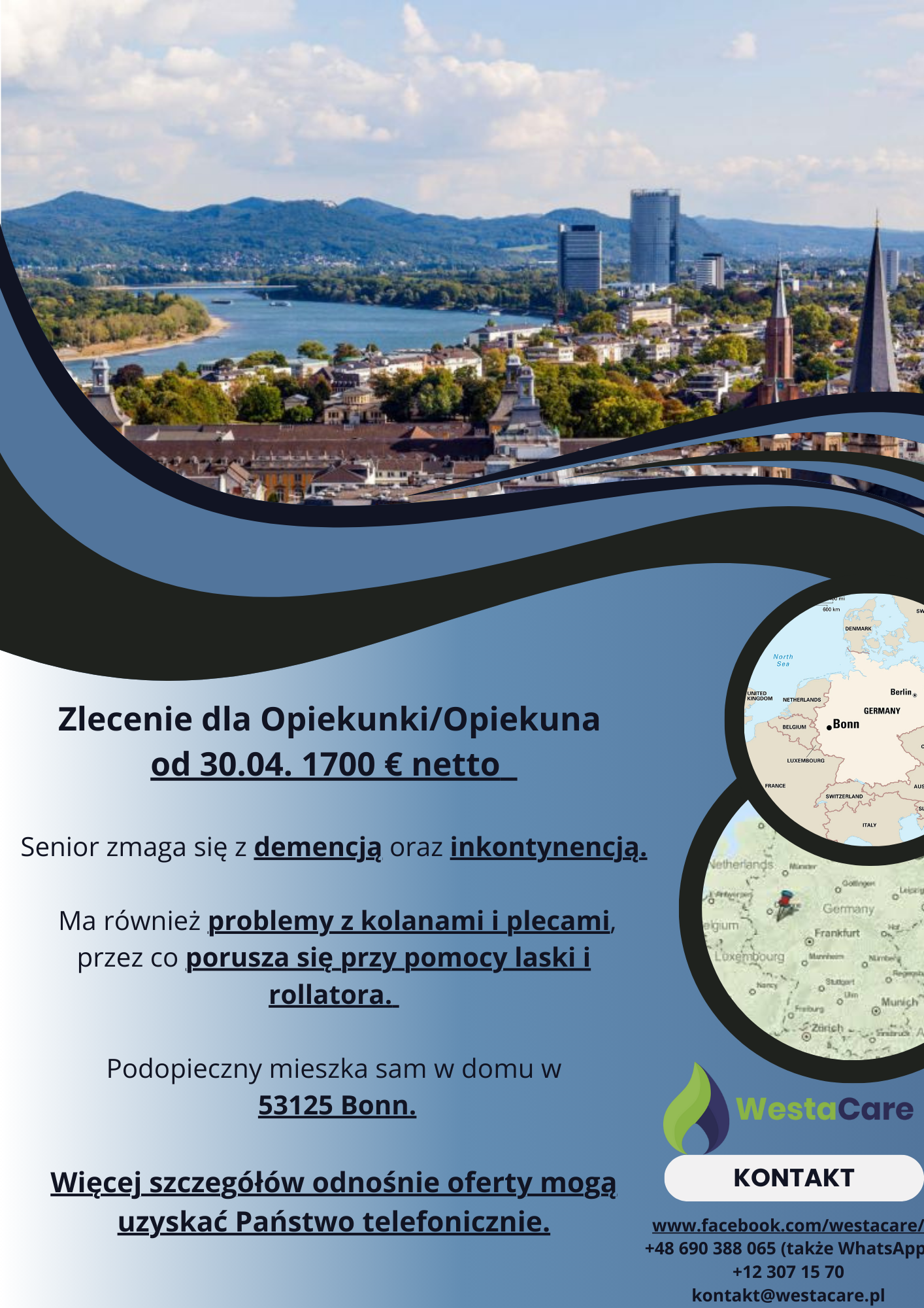 Zlecenie dla Opiekunki/Opiekuna od 30.04. 1700 € netto