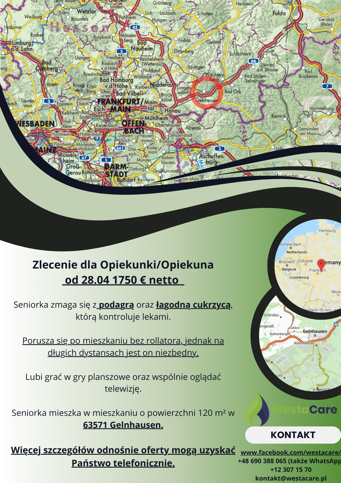 Zlecenie dla Opiekunki/Opiekuna od 28.04 1750 € netto