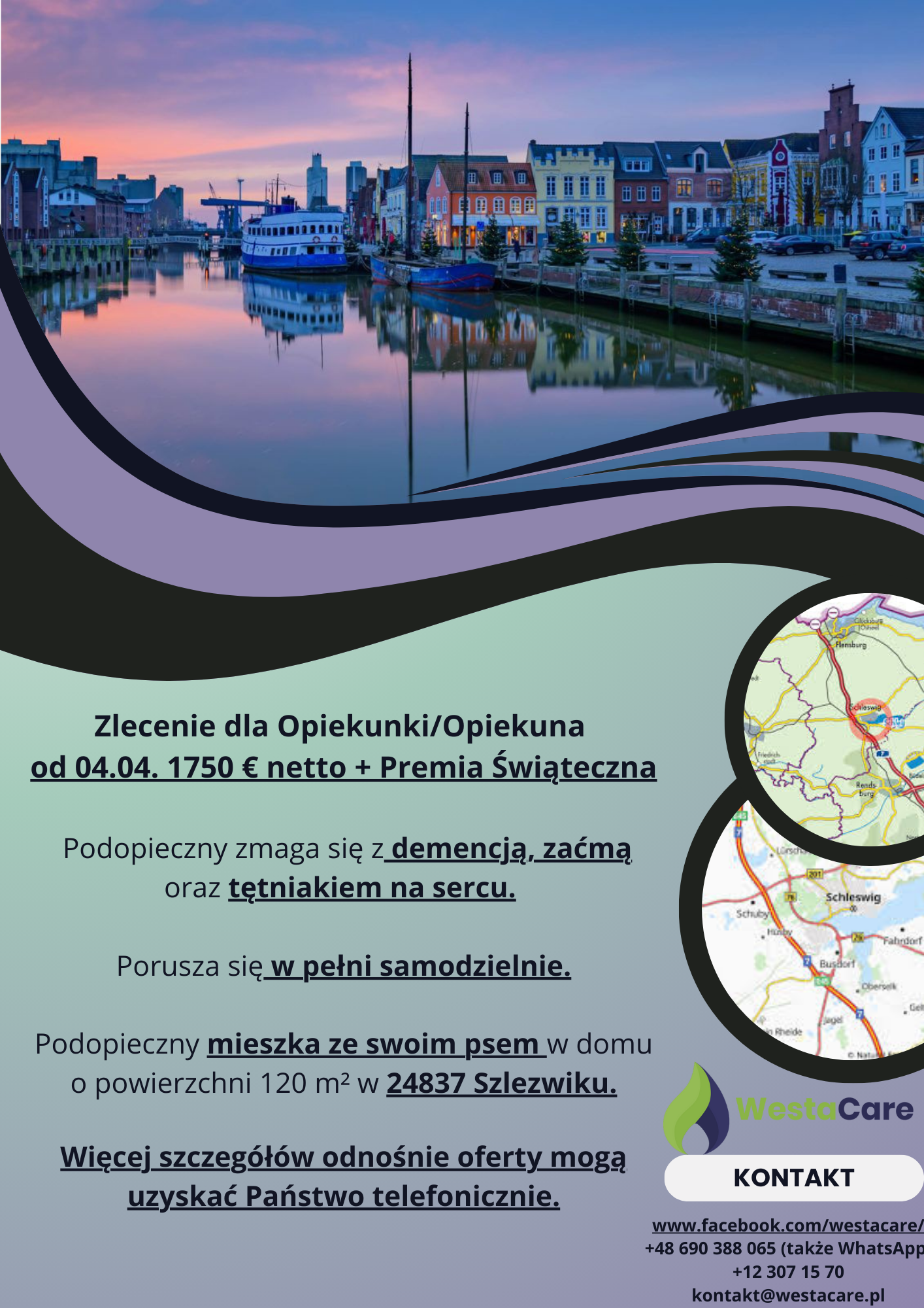 Zlecenie dla Opiekunki/Opiekuna od 04.04. 1750 € netto + Premia Świąteczna