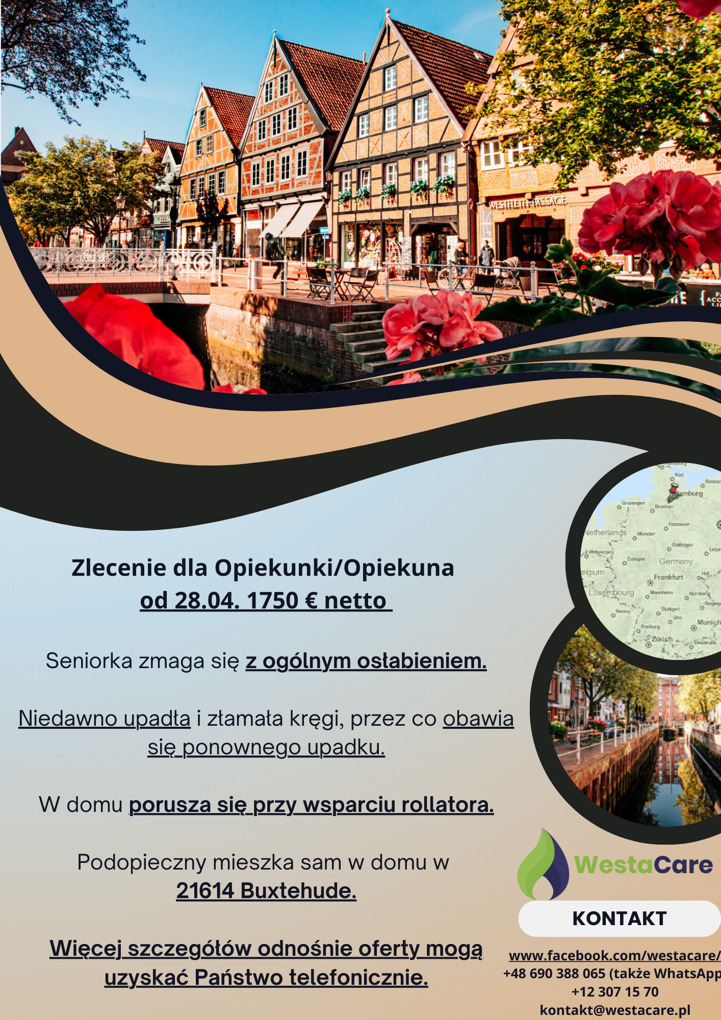 Zlecenie dla Opiekunki/Opiekuna od 28.04. 1750 € netto
