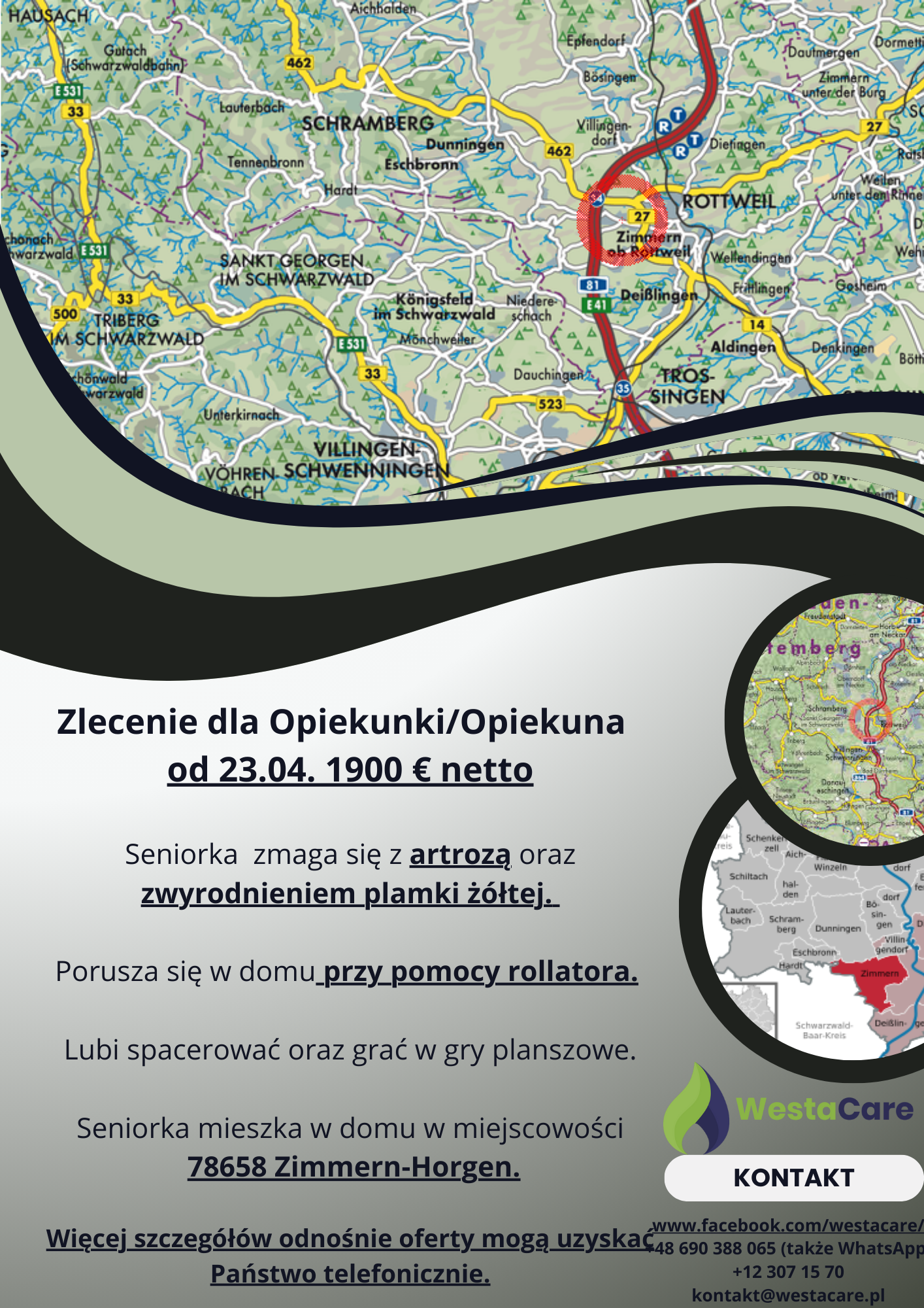 Zlecenie dla Opiekunki/Opiekuna od 23.04. 1900 € netto