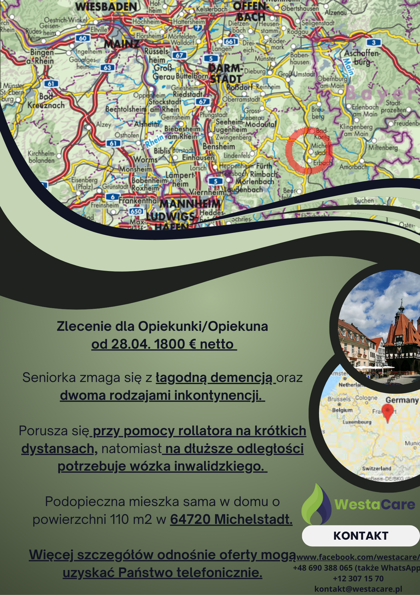 Zlecenie dla Opiekunki/Opiekuna od 28.04. 1800 € netto