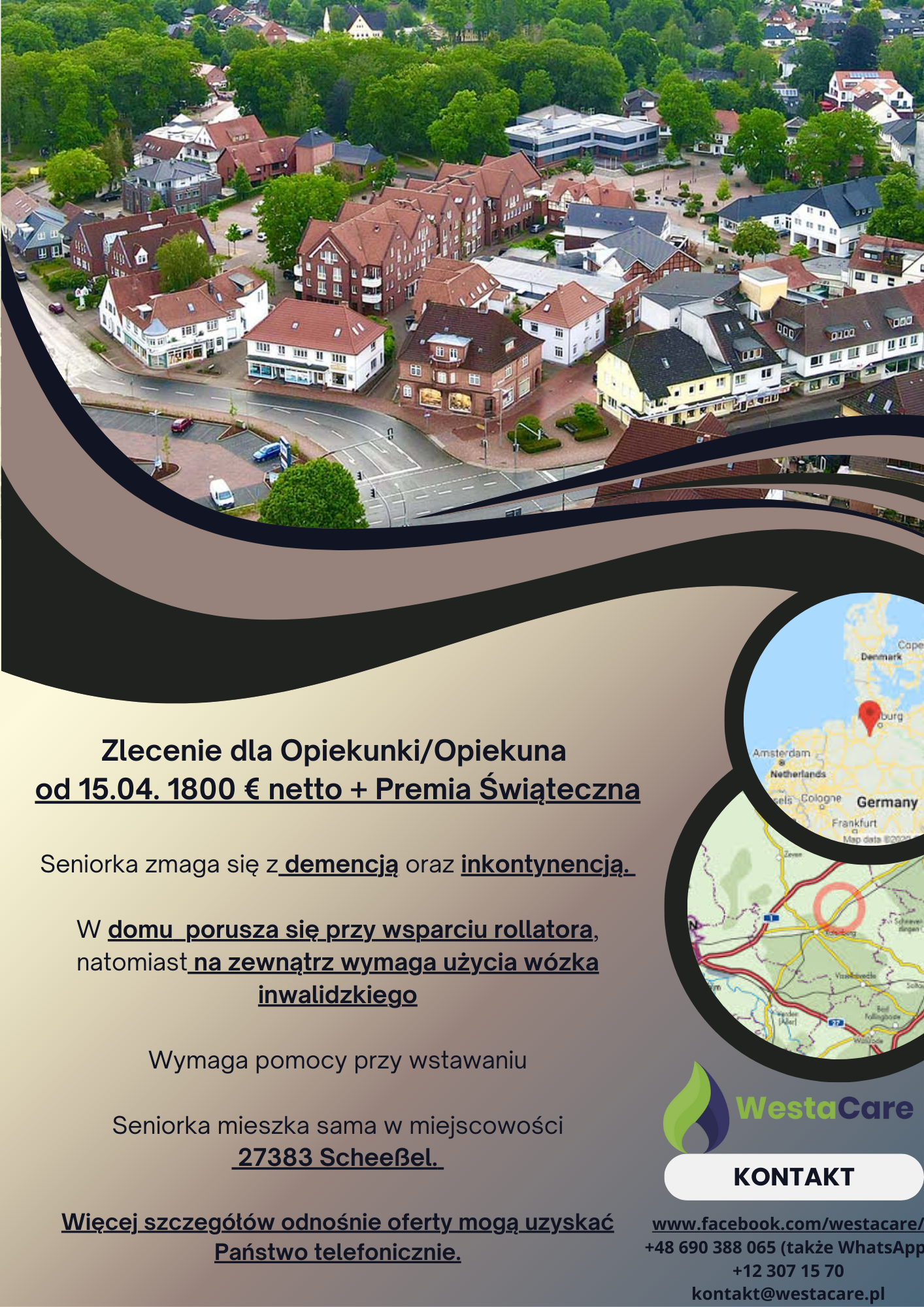 Zlecenie dla Opiekunki/Opiekuna od 15.04. 1800 € netto + Premia Świąteczna