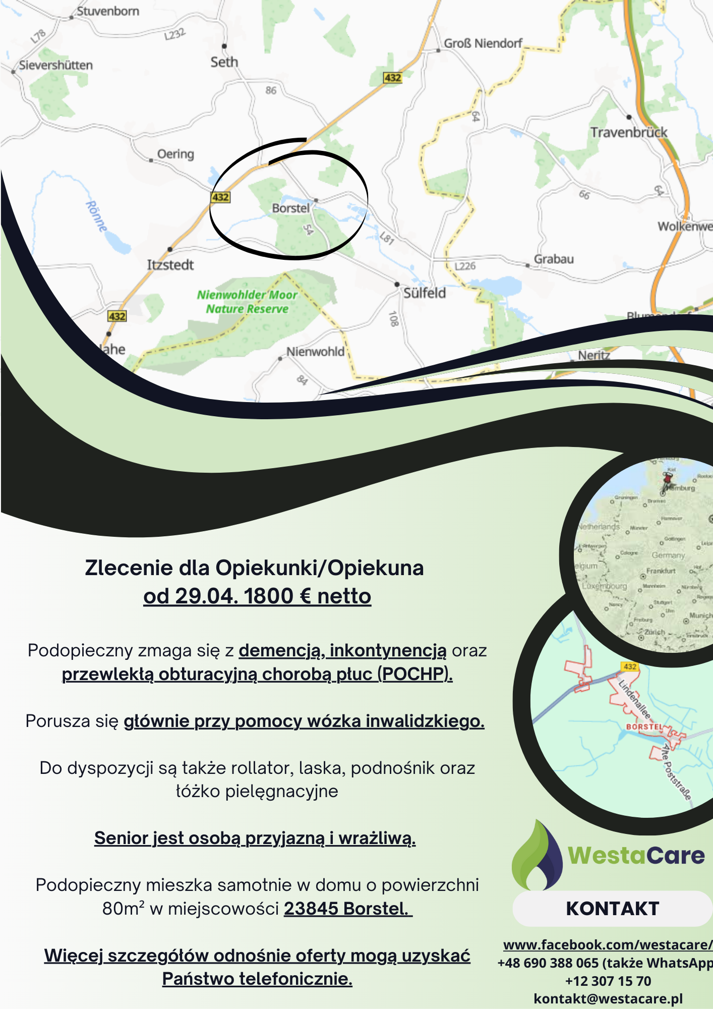 Zlecenie dla Opiekunki/Opiekuna od 29.04. 1800 € netto