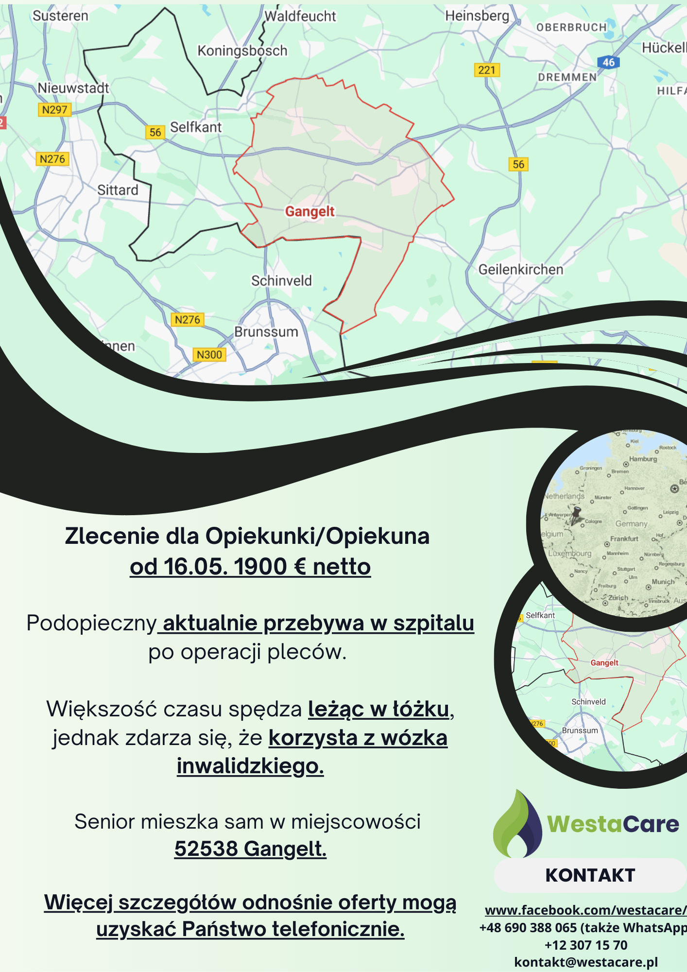 Zlecenie dla Opiekunki/Opiekuna od 16.05. 1900 € netto