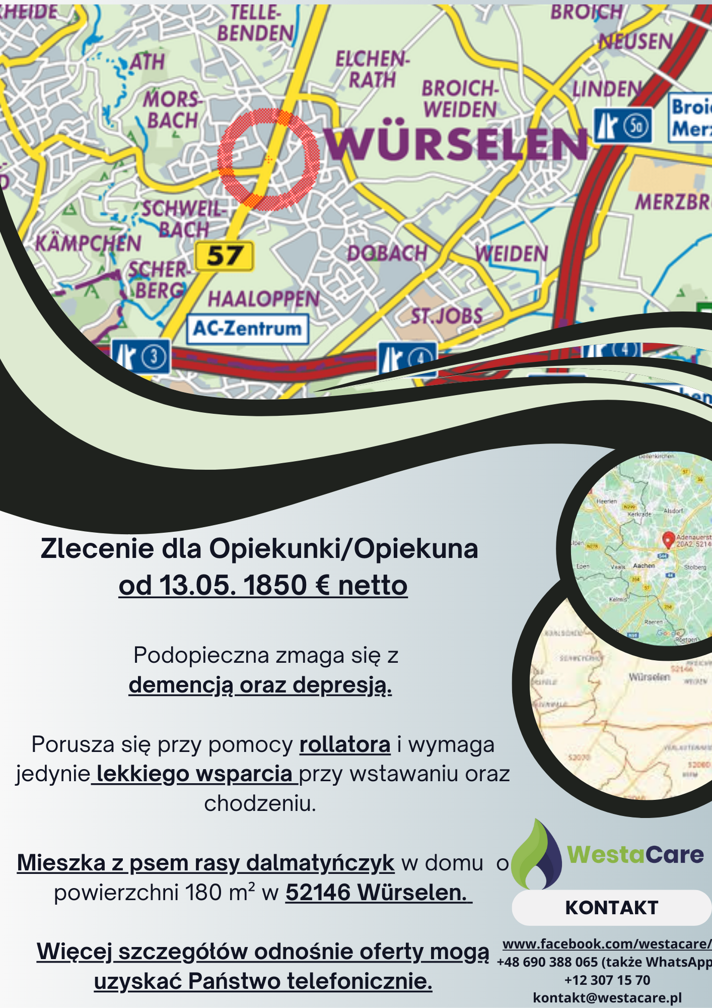 Zlecenie dla Opiekunki/Opiekuna od 13.05. 1850 € netto