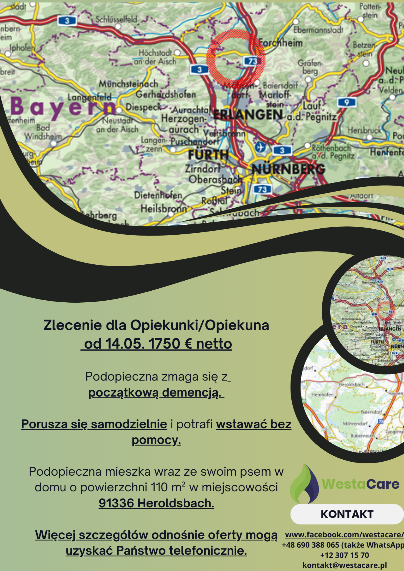 Zlecenie dla Opiekunki/Opiekuna od 14.05. 1750 € netto
