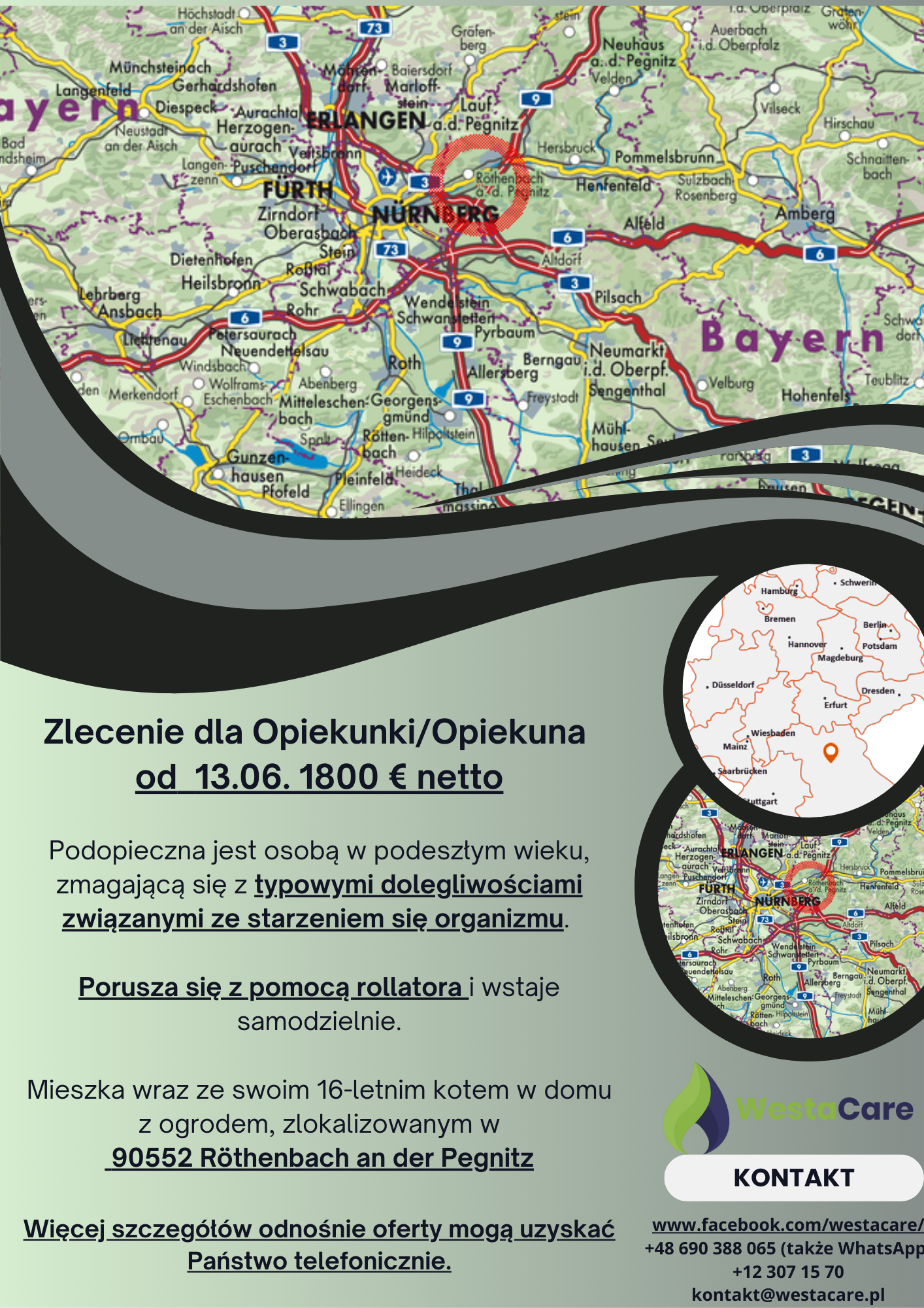 Zlecenie dla Opiekunki/Opiekuna od 13.06. 1800 € netto