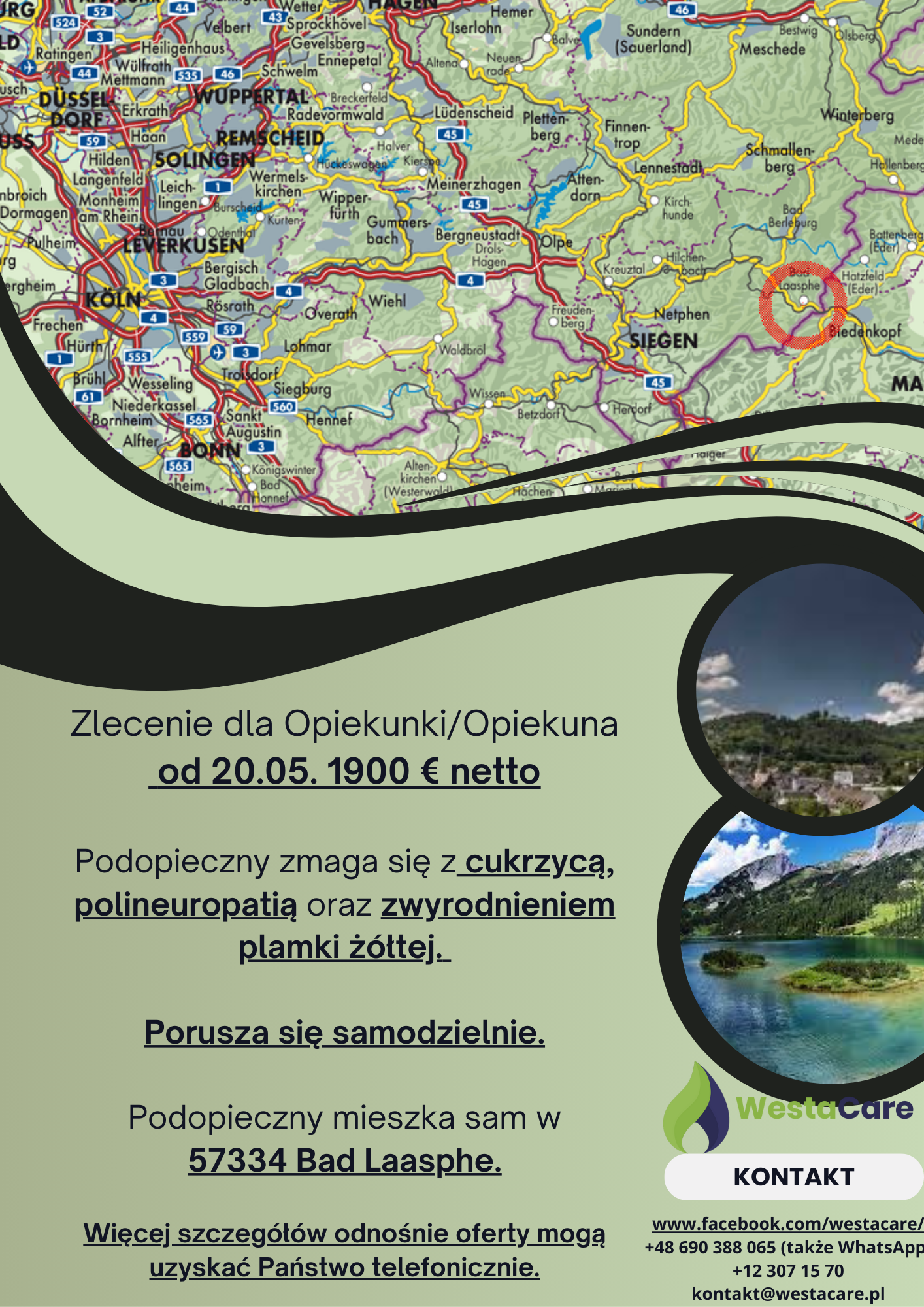 Zlecenie dla Opiekunki/Opiekuna od 20.05. 1900 € netto