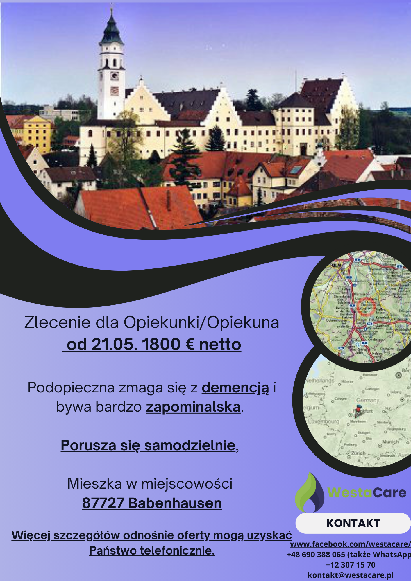 Zlecenie dla Opiekunki/Opiekuna od 21.05. 1800 € netto