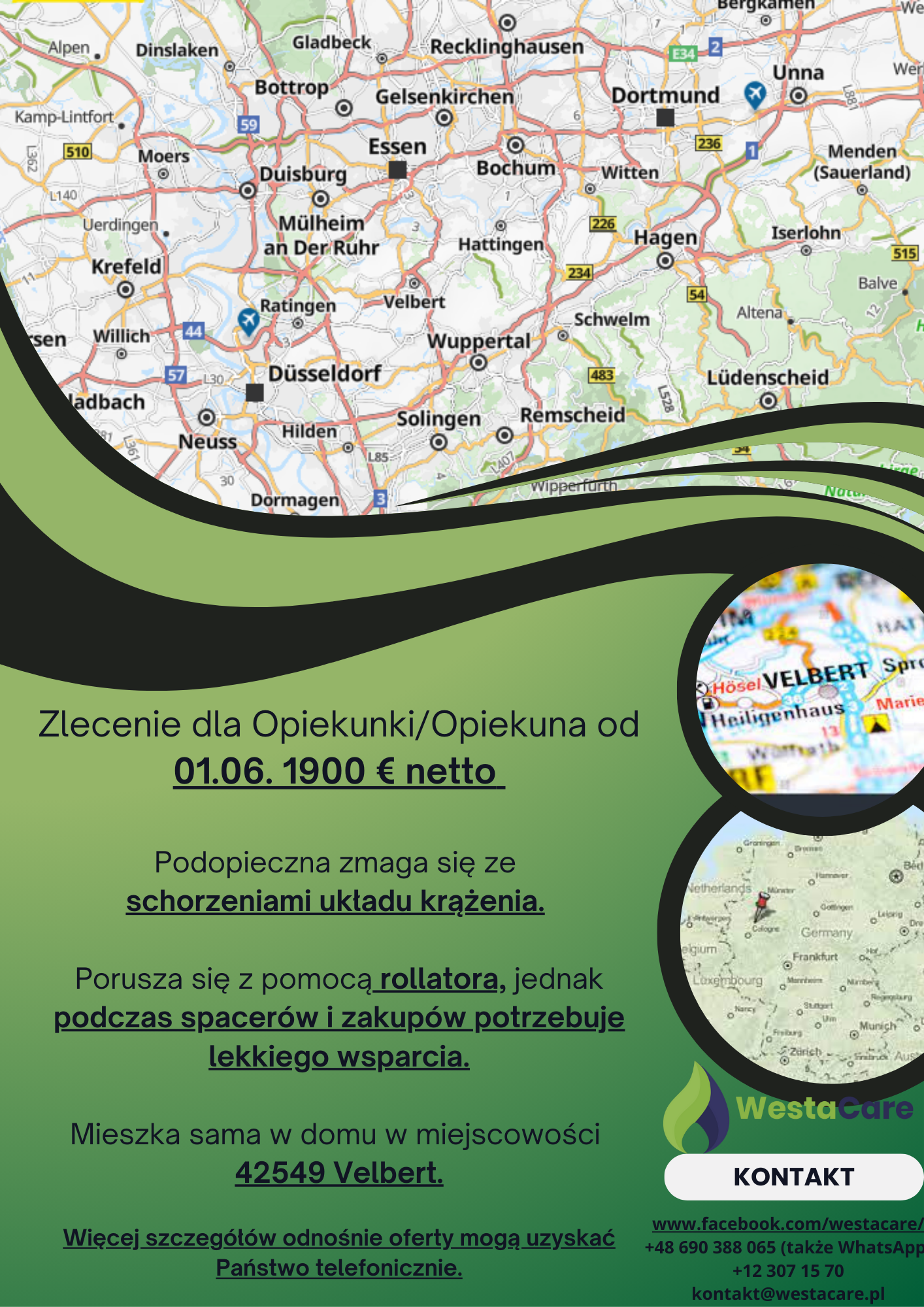 Zlecenie dla Opiekunki/Opiekuna od 01.06. 1900 € netto