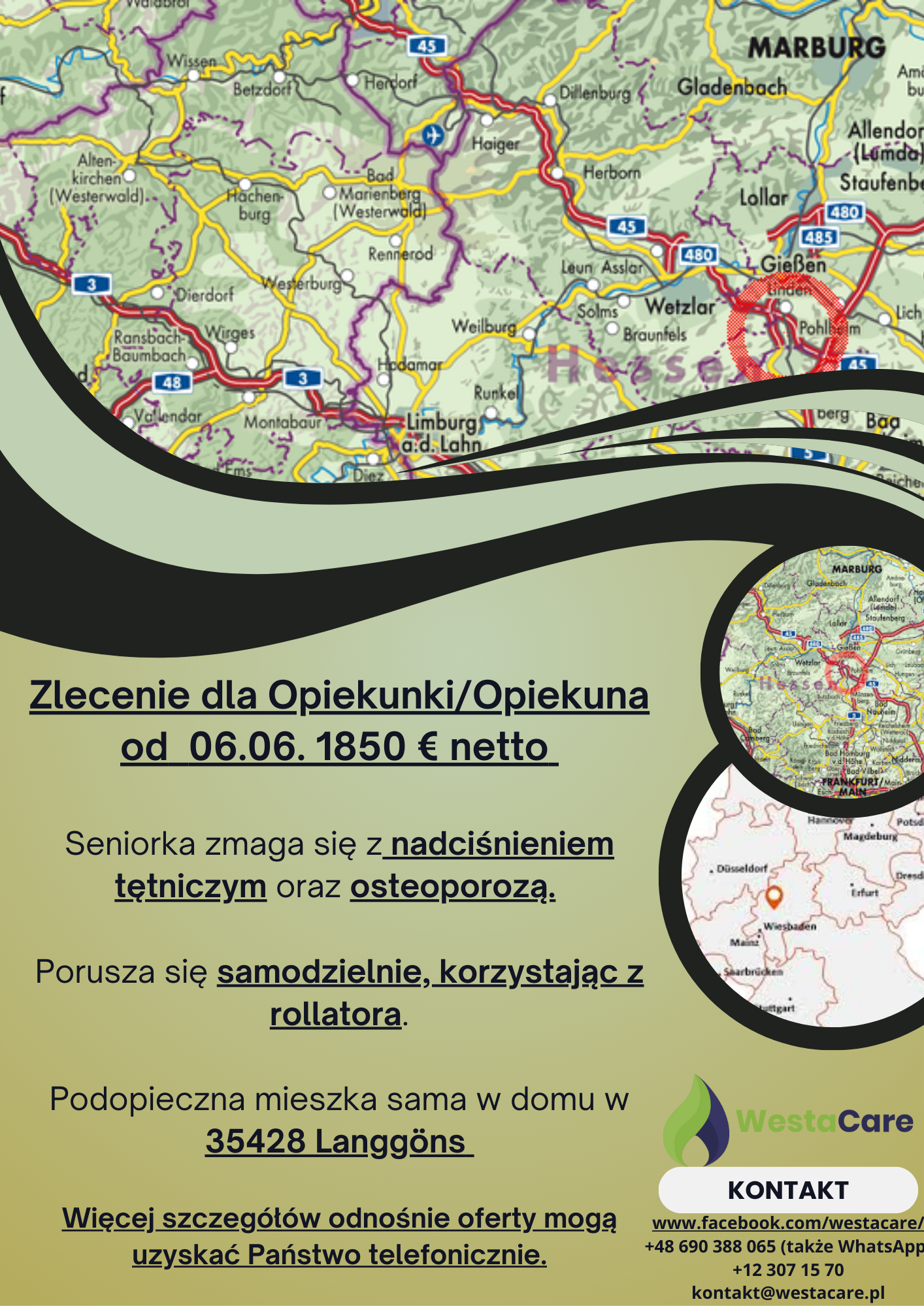 Zlecenie dla Opiekunki/Opiekuna od 06.06. 1850 € netto