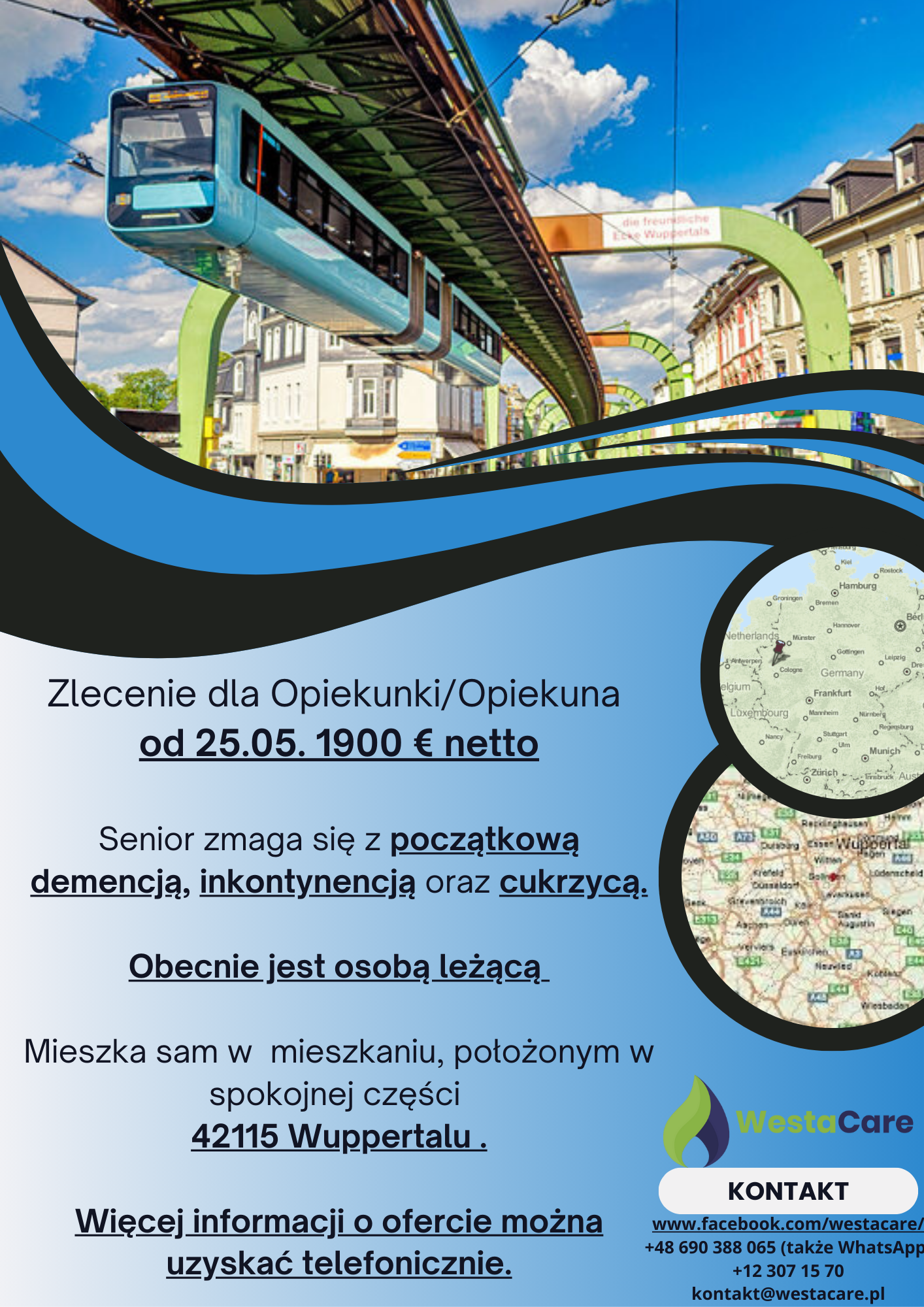 Zlecenie dla Opiekunki/Opiekuna od 25.05. 1900 € netto