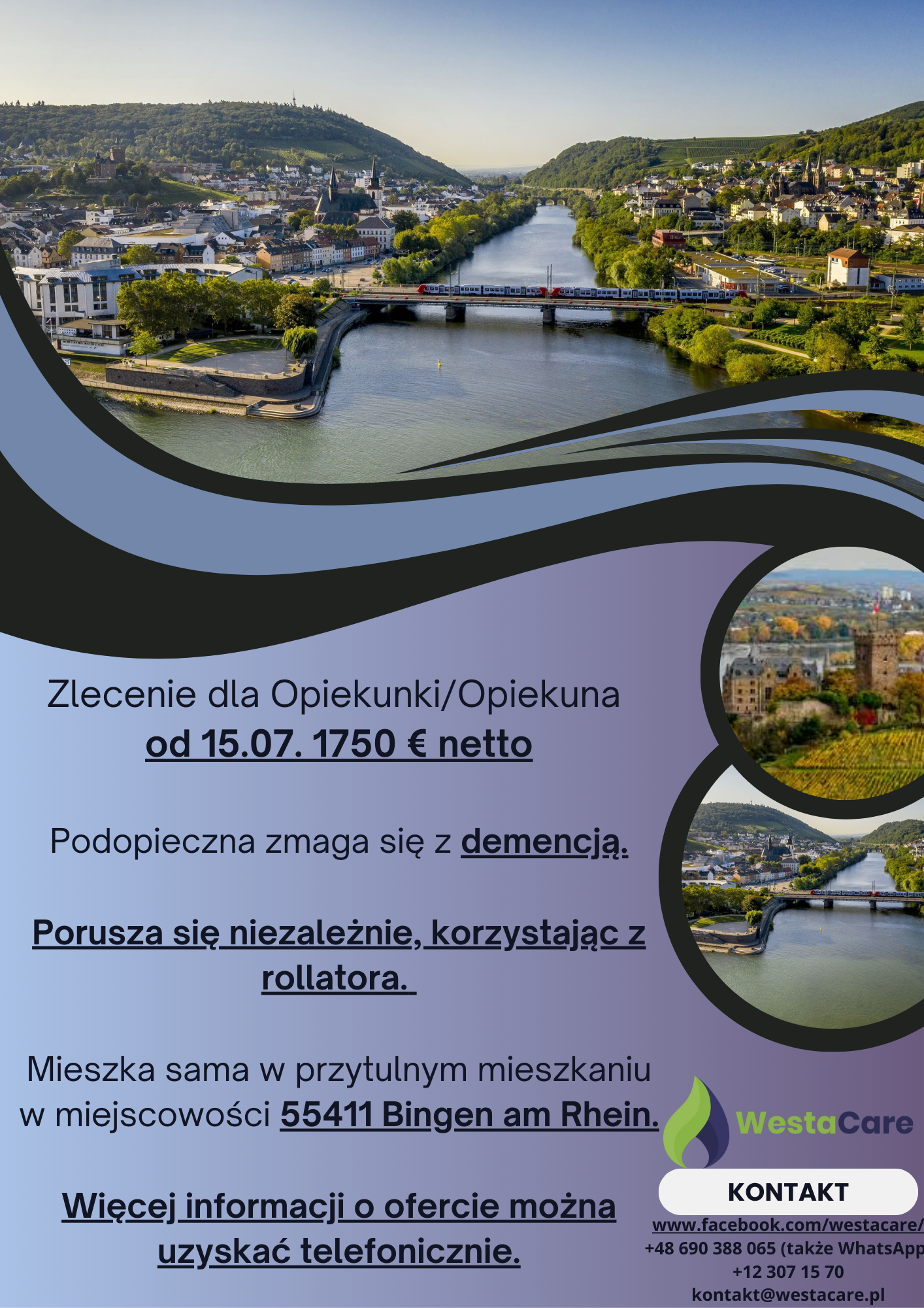 Zlecenie dla Opiekunki/Opiekuna od 15.07. 1750 € netto