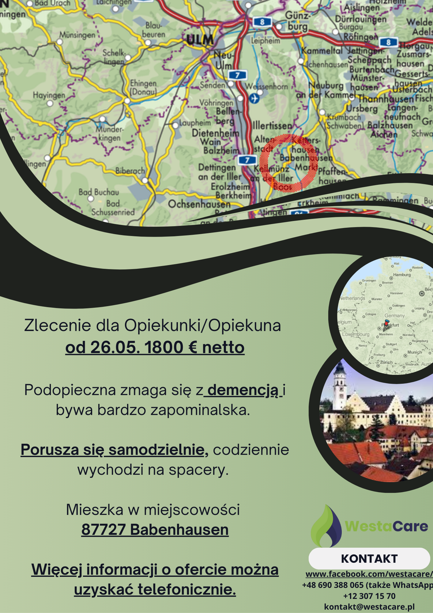 Zlecenie dla Opiekunki/Opiekuna od 26.05. 1800 € netto