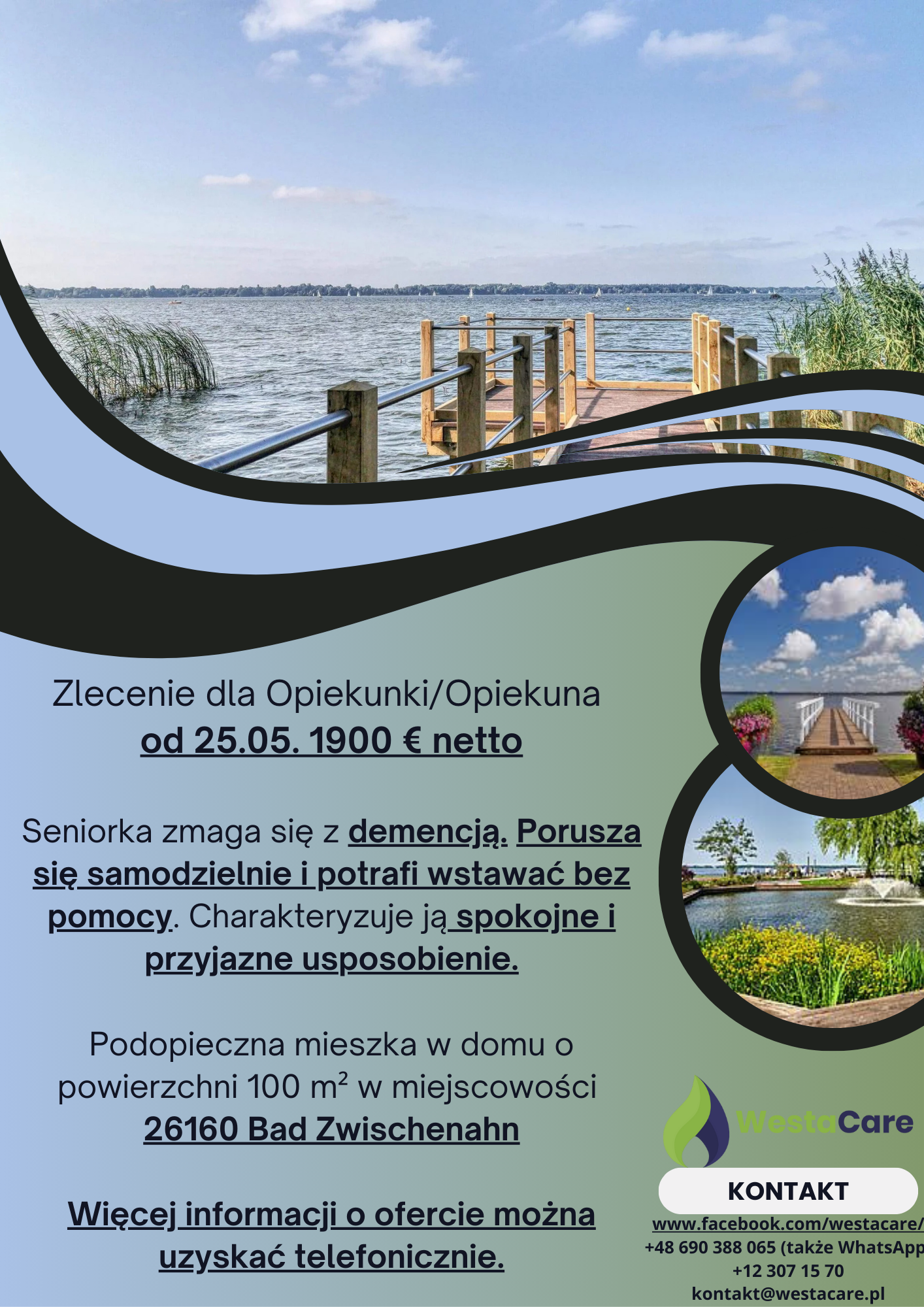 Zlecenie dla Opiekunki/Opiekuna od 25.05. 1900 € netto