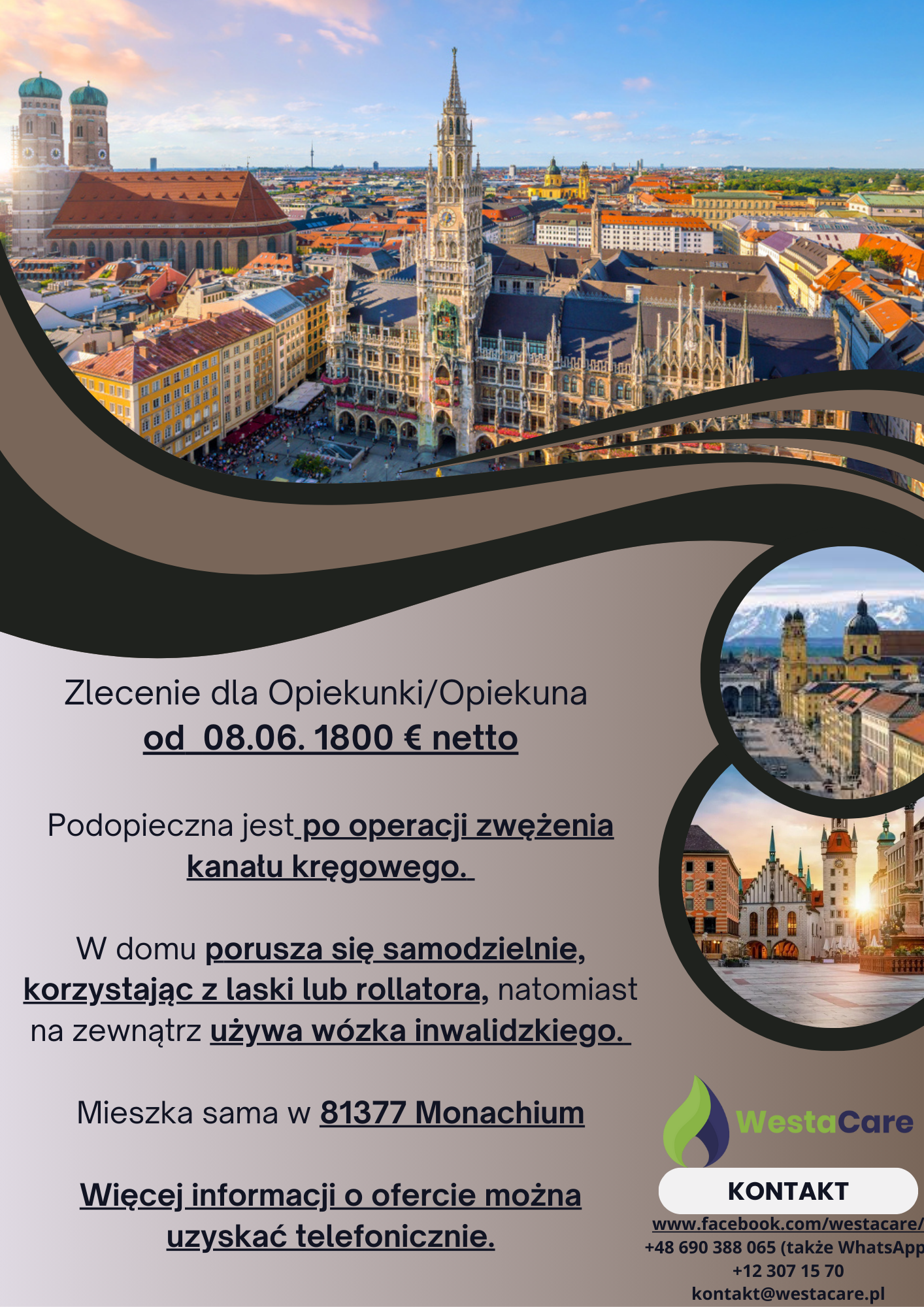 Zlecenie dla Opiekunki/Opiekuna od 08.06. 1800 € netto