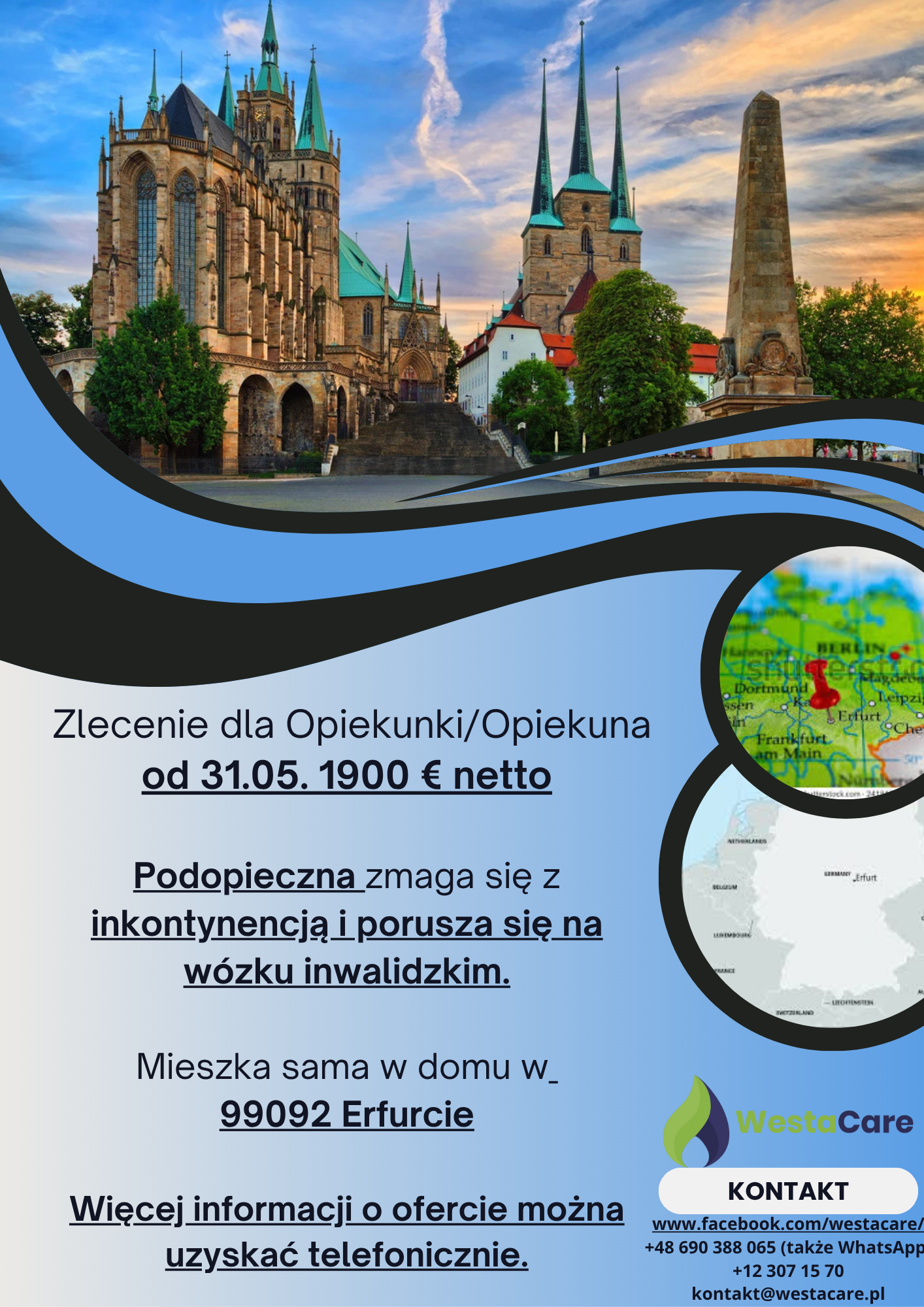 Zlecenie dla Opiekunki/Opiekuna od 31.05. 1900 € netto