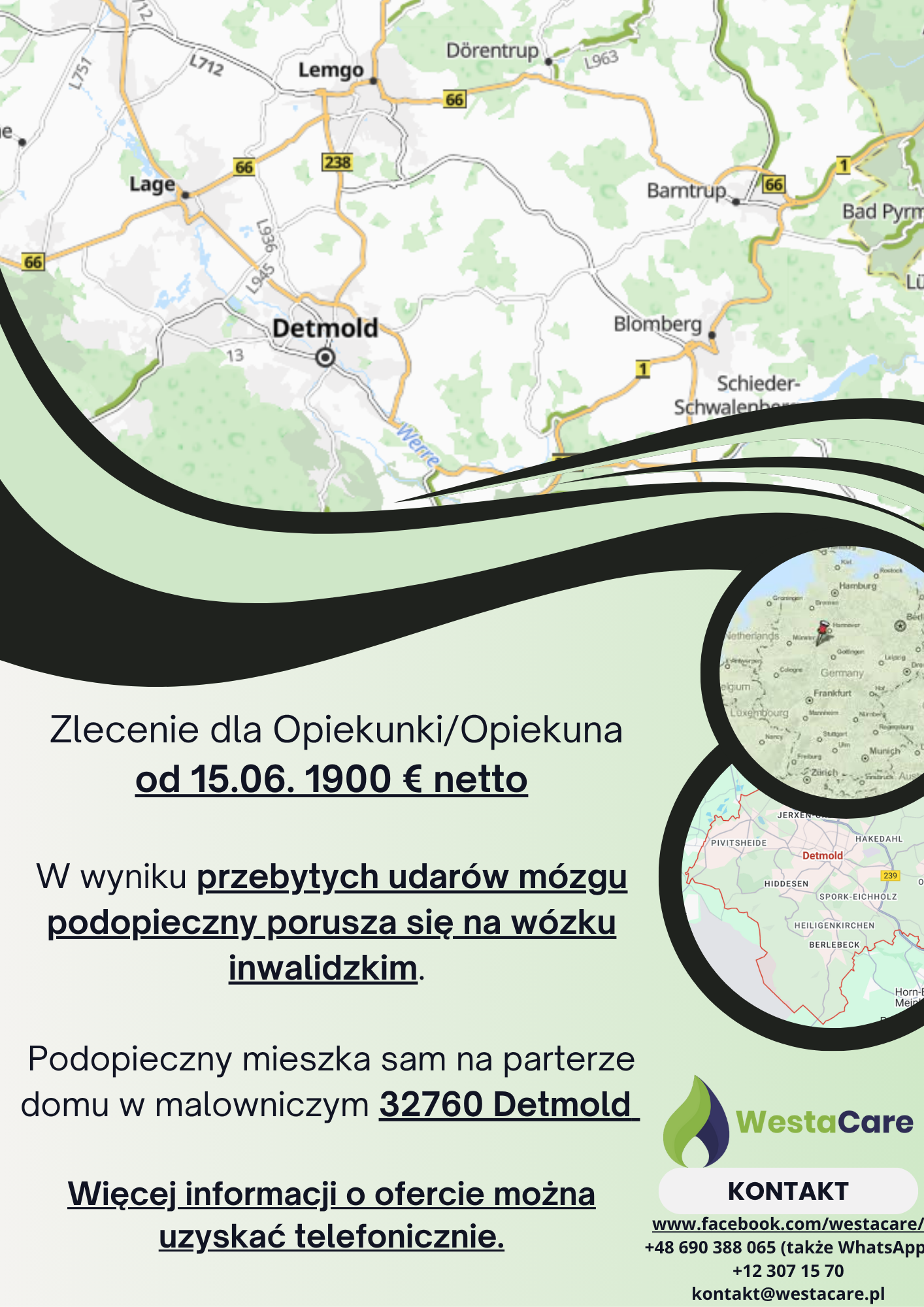 Zlecenie dla Opiekunki/Opiekuna od 15.06. 1900 € netto