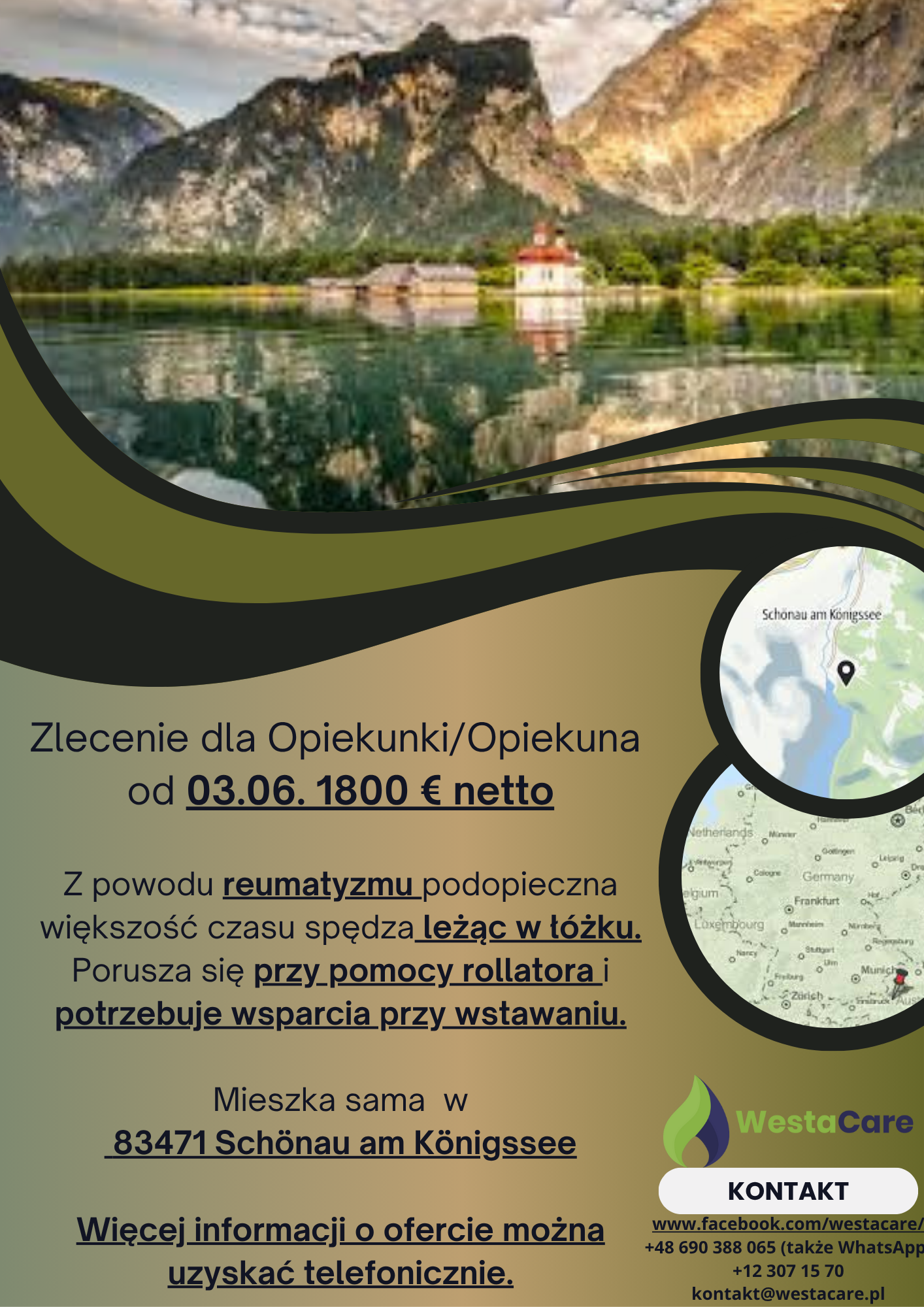 Zlecenie dla Opiekunki/Opiekuna od 03.06. 1800 € netto